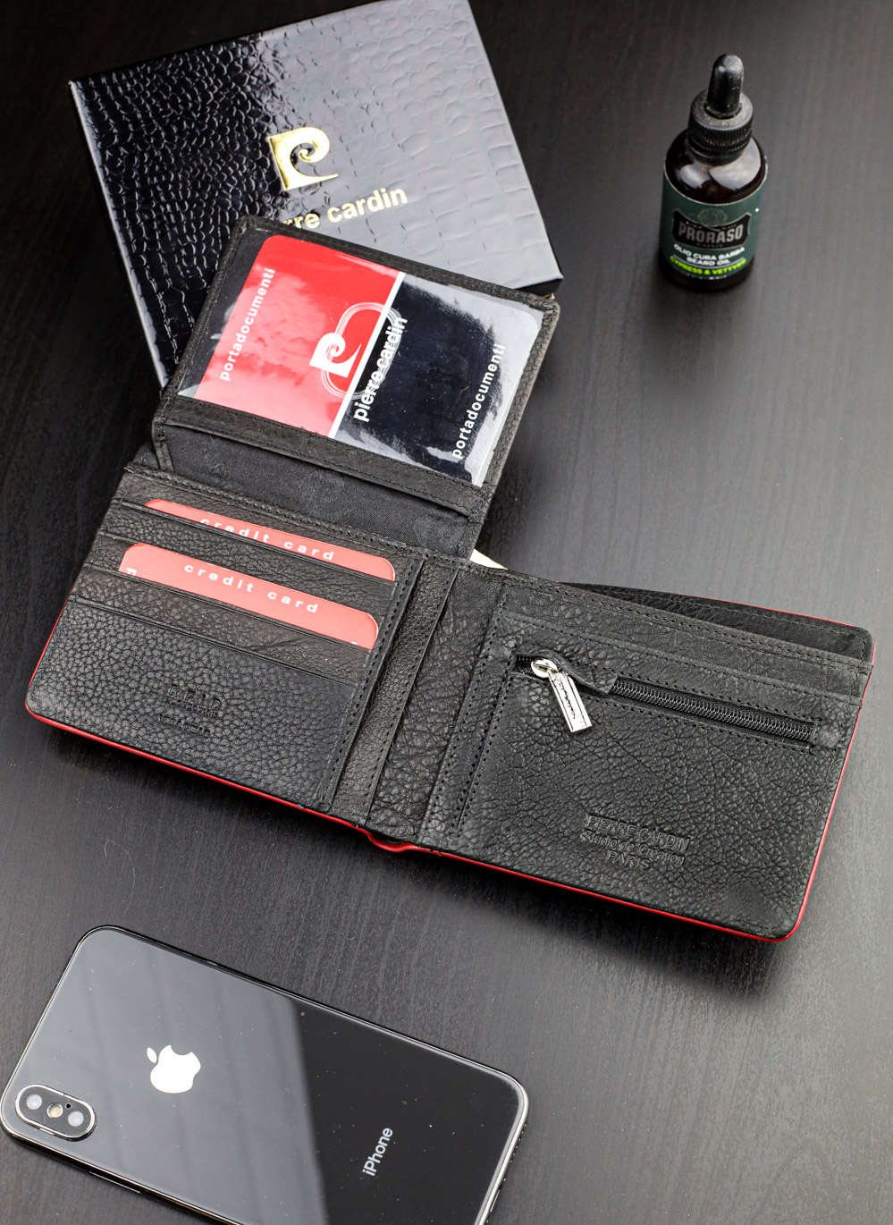 Vīriešu ādas maks Pierre Cardin Tumble 88061 melns + sarkans S430