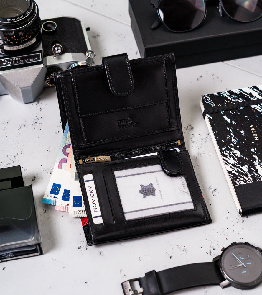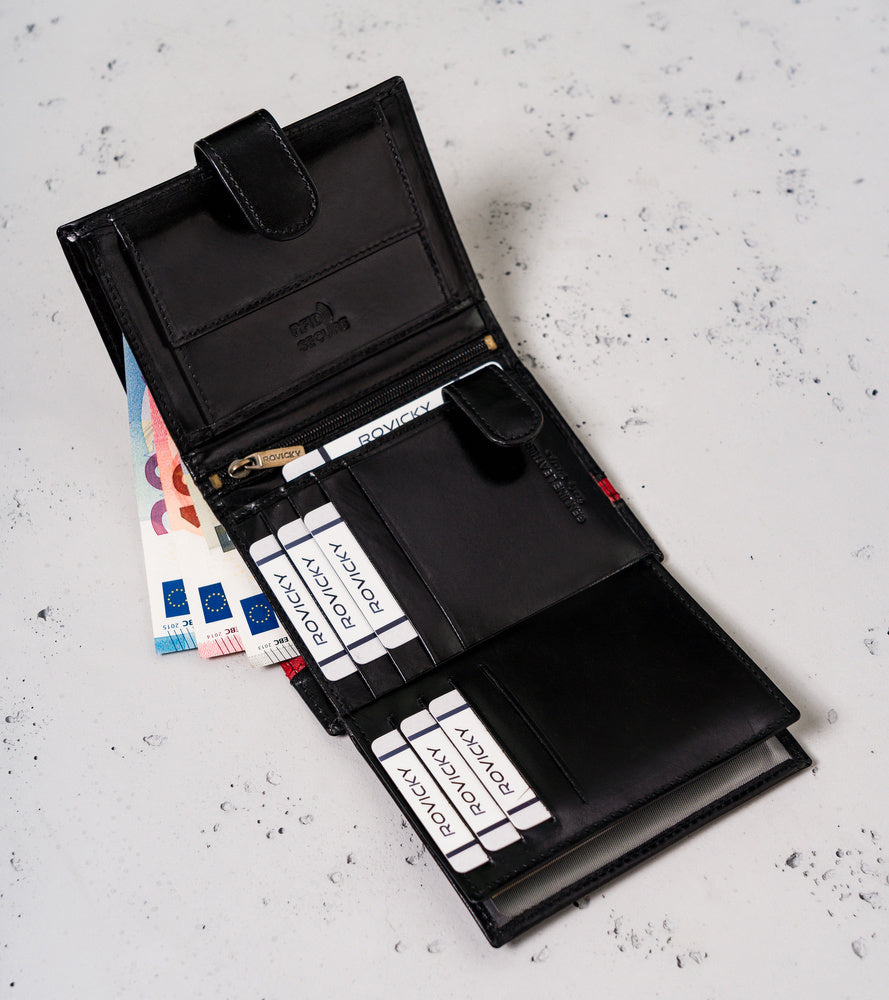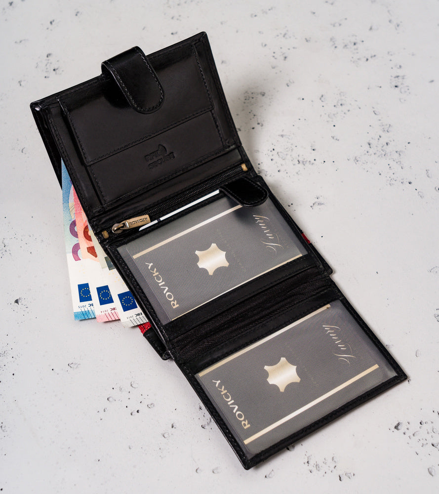 Šis elegantais vīriešu maks Rovicky RV110 ir izgatavots no augstas kvalitātes īstas ādas, kas nodrošina izturību un stilīgu izskatu. Makam ir liels izmērs, tāpēc tas ir ideāli piemērots tiem, kas novērtē telpu un funkcionalitāti.