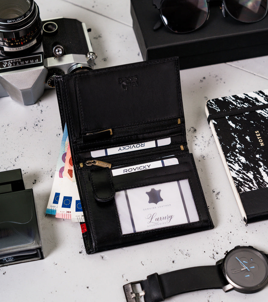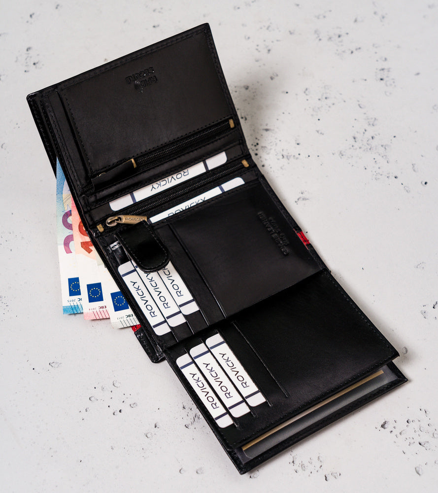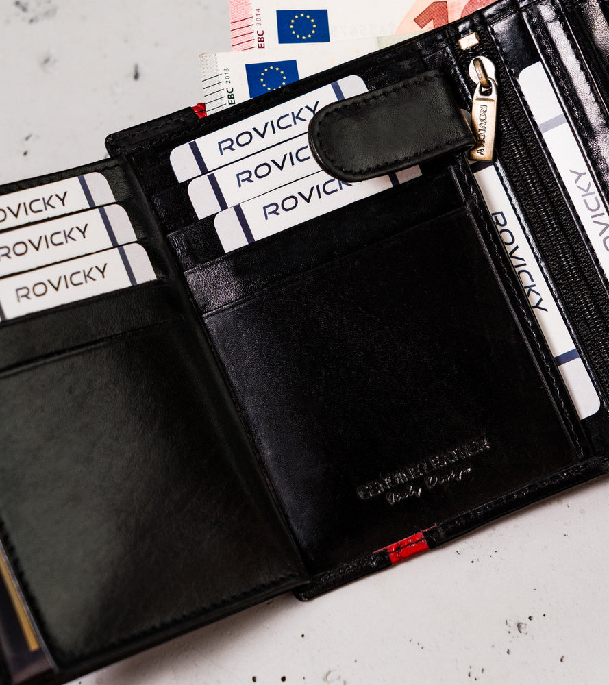 Šis elegantais vīriešu maks no Rovicky ir izgatavots no augstas kvalitātes īstas ādas, nodrošinot izturību un stilīgu izskatu.