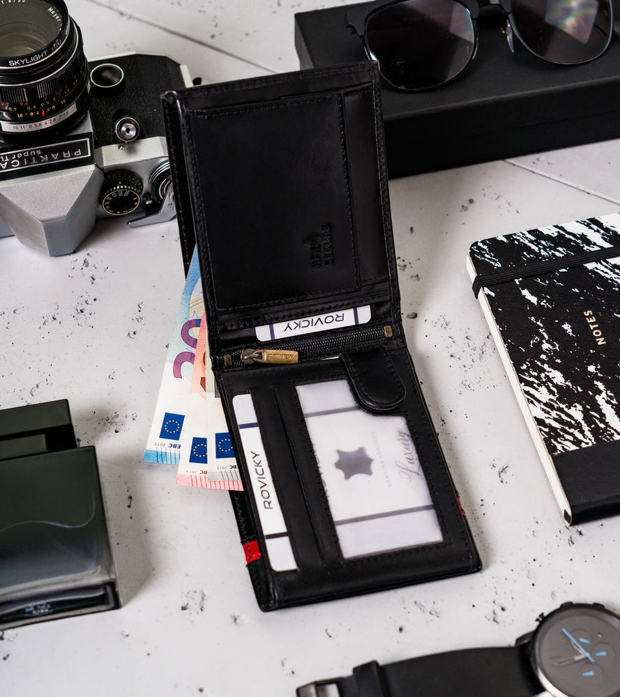 Šis elegantais vīriešu maks no Rovicky kolekcijas ir izgatavots no augstas kvalitātes īstas ādas, nodrošinot izturību un stilīgu izskatu.