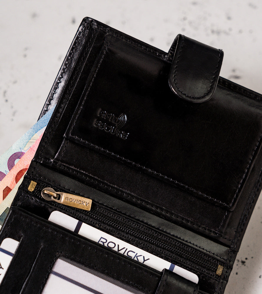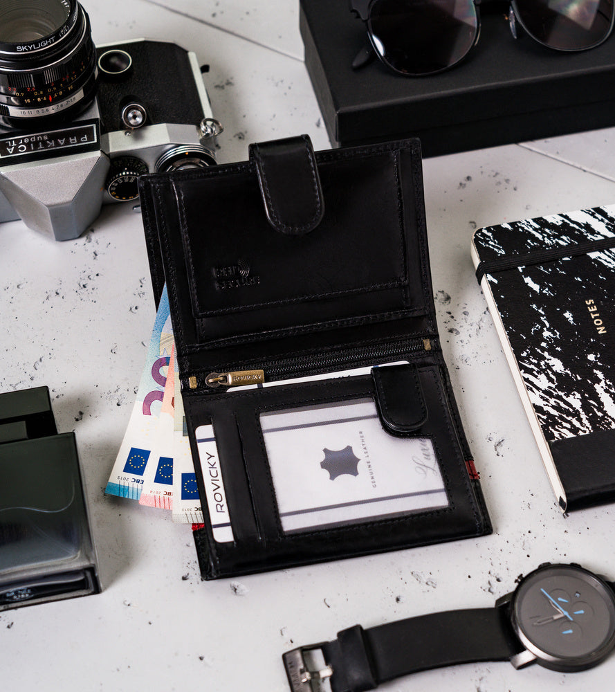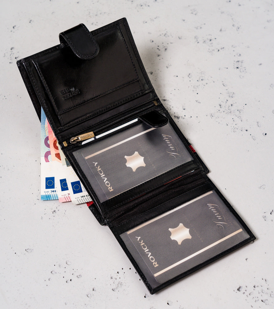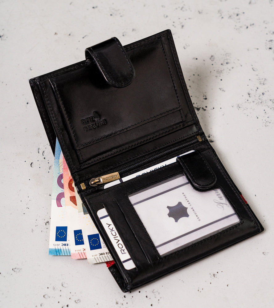 Šis elegantais vīriešu maks no Rovicky ir izgatavots no augstas kvalitātes īstas ādas, nodrošinot izturību un stilīgu izskatu.