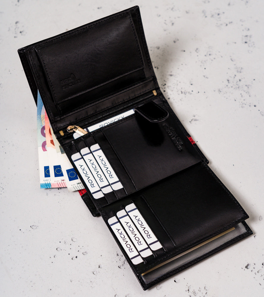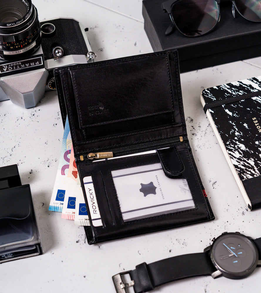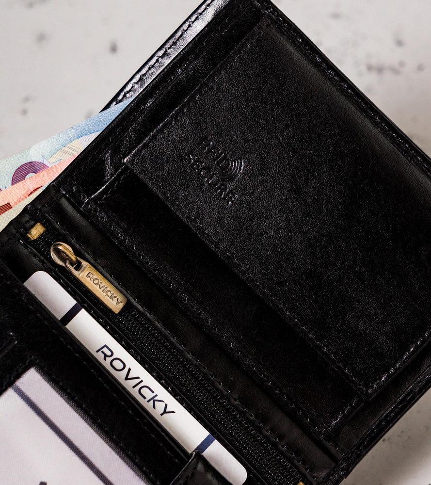 Šis elegantais vīriešu maks no Rovicky ir izgatavots no augstas kvalitātes īstas ādas, nodrošinot izturību un stilīgu izskatu.