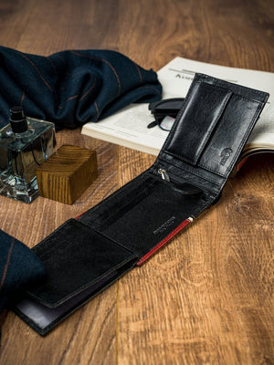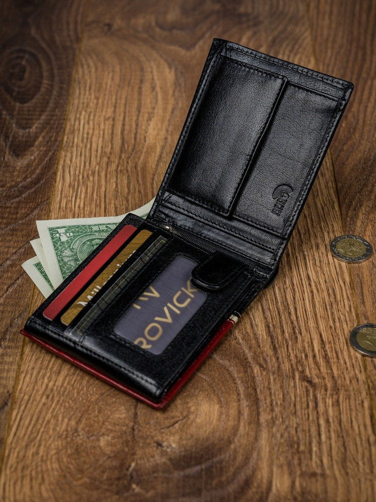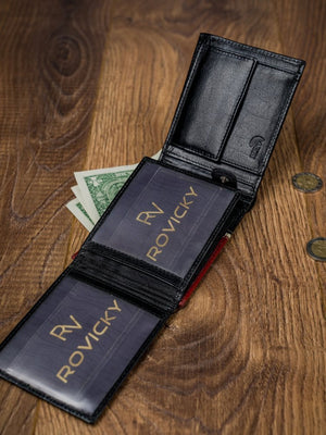 Vīriešu ādas maks Rovicky RV17 ir elegants un funkcionāls aksesuārs, kas izgatavots no augstas kvalitātes īstas ādas. Šim makam ir moderns dizains, un tas ir pieejams divās krāsās: klasiski melnā un ekskluzīvi sarkanā. Pateicoties lielajam izmēram un 6-10 karšu nodalījumiem, tas ir lieliski piemērots ikdienas lietošanai. Turklāt integrētā RFID aizsardzība nodrošina jūsu karšu drošību no nevēlamas skenēšanas. Izmēri 9,5 cm x 12 cm x 2 cm ļauj ērti uzglabāt maku kabatā vai somā.