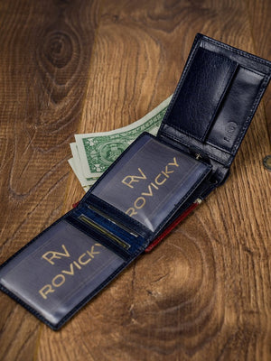 Vīriešu ādas maks Rovicky RV18 ir elegants un funkcionāls aksesuārs, kas izgatavots no augstas kvalitātes īstas ādas. Šis sarkanais maks ir ne tikai stilīgs, bet arī praktisks, jo tam ir RFID aizsardzība, kas palīdz aizsargāt jūsu kartes no nevēlamas skenēšanas. Vidēja izmēra maks ar 6-10 karšu nodalījumiem ir lieliski piemērots ikdienas lietošanai.