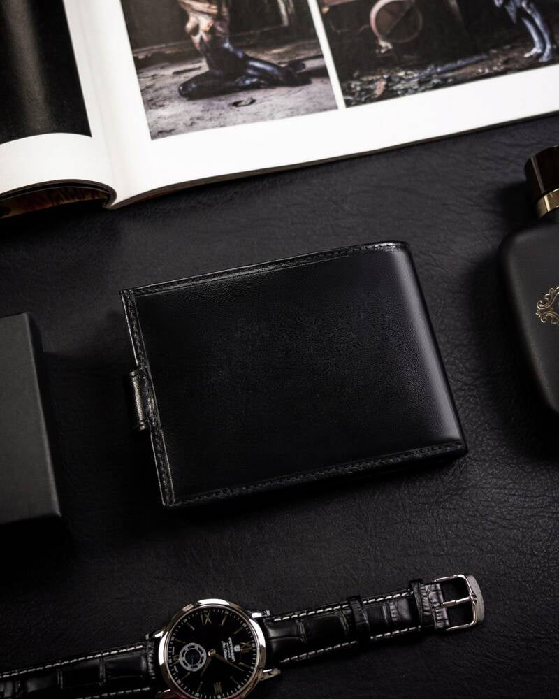 Šis elegantais vīriešu maks no Rovicky ir izgatavots no augstas kvalitātes īstas ādas, kas nodrošina izturību un stilīgu izskatu. Melnā krāsa piešķir tam klasisku un daudzpusīgu izskatu, kas piemērots jebkuram gadījumam.