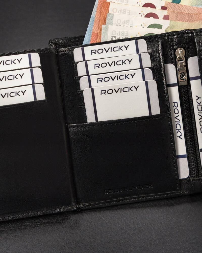 Šis vīriešu ādas maks Rovicky RV187 ir lieliska izvēle tiem, kas novērtē kvalitāti un funkcionalitāti. Izgatavots no īstas ādas, tas ne tikai izskatās eleganti, bet arī ir izturīgs. Melnā krāsa nodrošina klasisku un daudzpusīgu stilu, kas piemērots jebkuram gadījumam. Lielais izmērs nodrošina, ka jums būs pietiekami daudz vietas visām jūsu mantām, un vairāk nekā 10 karšu nodalījumi ļaus ērti uzglabāt visas nepieciešamās kartes. Turklāt integrētā RFID aizsardzība palīdzēs aizsargāt jūsu personas datus no neatļautas skenēšanas.