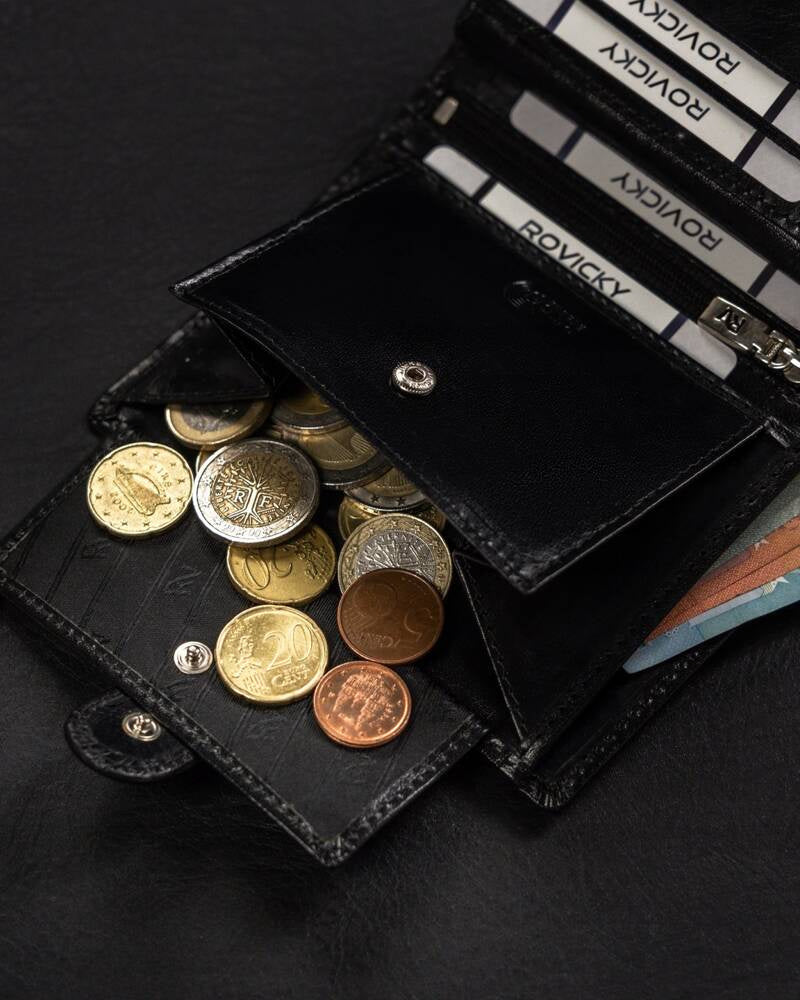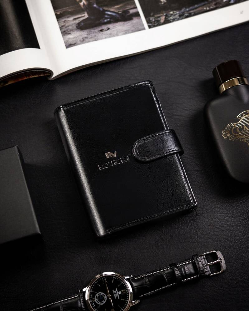 Šis elegantais vīriešu maks no Rovicky ir izgatavots no augstas kvalitātes īstas ādas, kas nodrošina izturību un stilīgu izskatu. Melnais dizains piešķir tam klasisku un daudzpusīgu izskatu, kas piemērots jebkuram gadījumam.