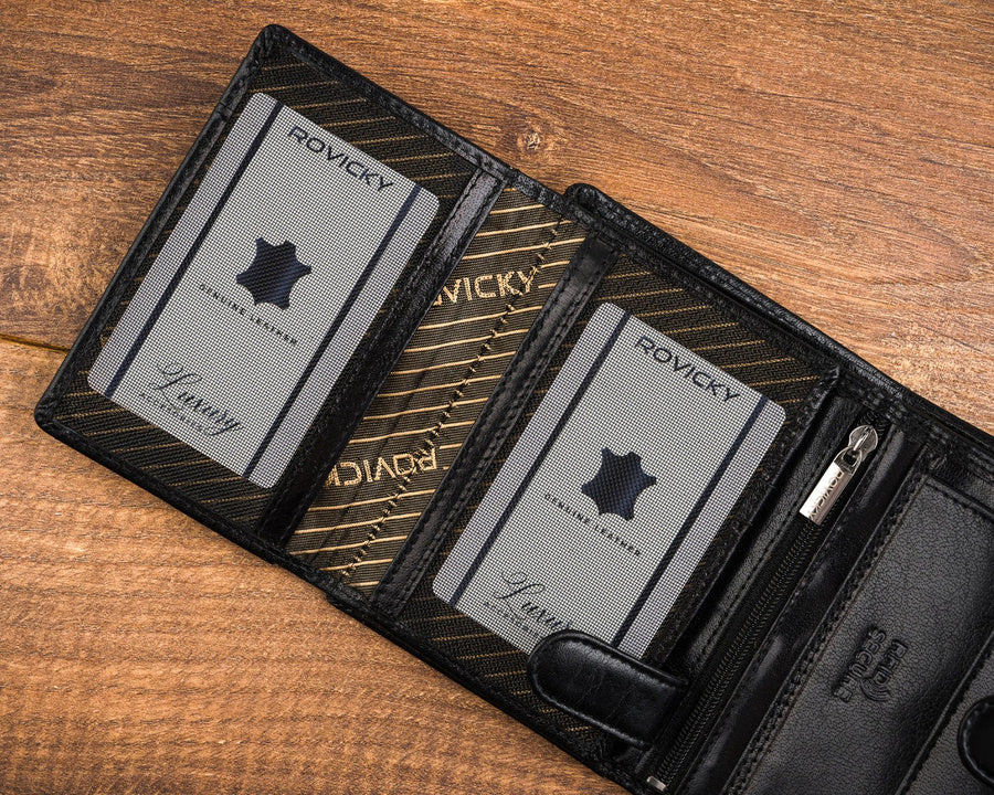 Šis elegantais vīriešu maks no Rovicky zīmola ir izgatavots no augstas kvalitātes īstas ādas, kas nodrošina izturību un stilīgu izskatu.