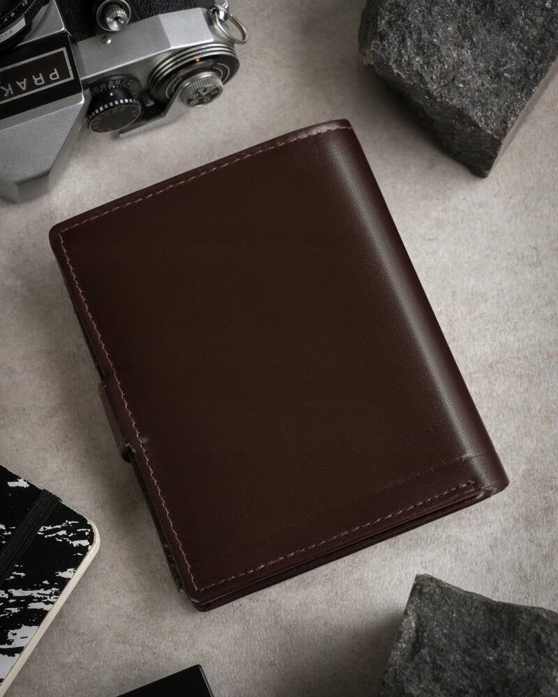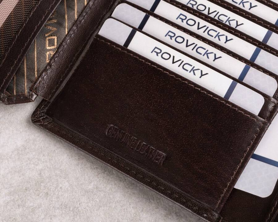 Šis Rovicky vīriešu maks ir izgatavots no augstas kvalitātes īstas ādas, kas nodrošina izturību un eleganci. Brūnais dizains piešķir tam klasisku un stilīgu izskatu.