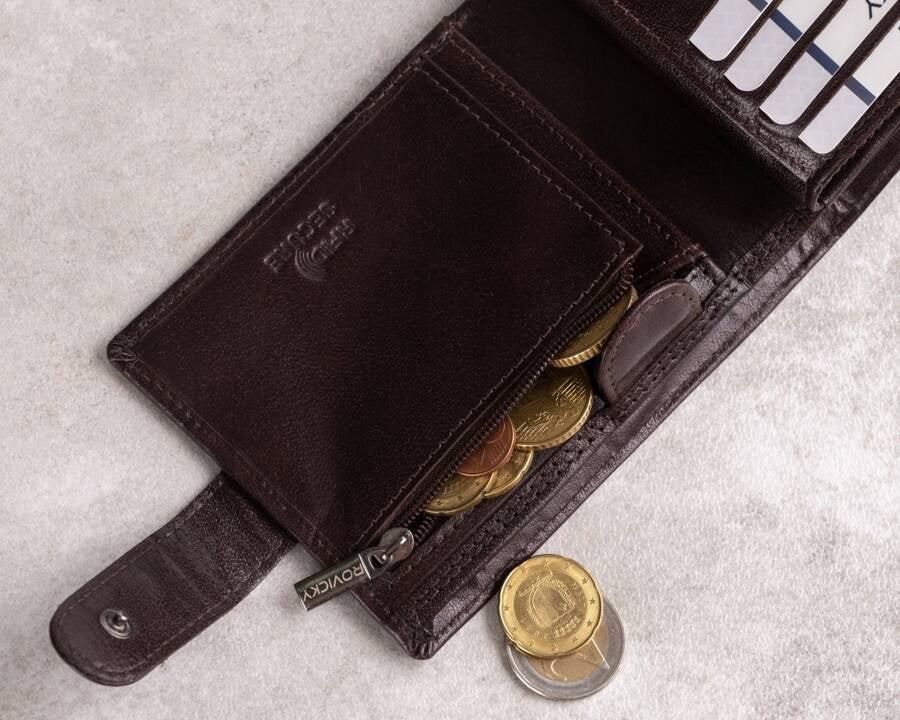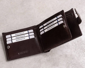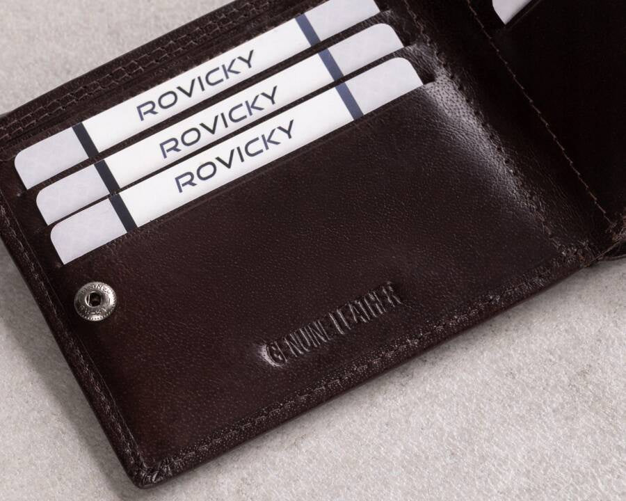 Šis Rovicky vīriešu maks ir izgatavots no augstas kvalitātes īstas ādas, kas nodrošina izturību un eleganci. Brūnais dizains piešķir tam klasisku un stilīgu izskatu.