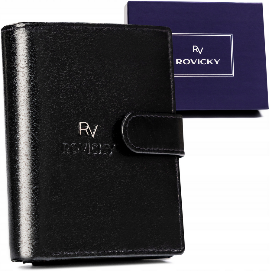 Šis elegantais vīriešu maks no Rovicky ir izgatavots no augstas kvalitātes īstas ādas, kas nodrošina izturību un stilīgu izskatu. Melnā krāsa piešķir tam klasisku un daudzpusīgu izskatu, kas piemērots jebkuram gadījumam.