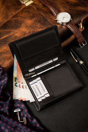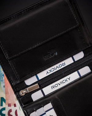 Šis vīriešu ādas maks Rovicky RV218 ir lieliska izvēle tiem, kas novērtē kvalitāti un funkcionalitāti. Izgatavots no īstas ādas, tas ne tikai izskatās eleganti, bet arī ir izturīgs. Melnā krāsa nodrošina klasisku un daudzpusīgu stilu, kas piemērots jebkuram gadījumam. Makam ir RFID aizsardzība, lai nodrošinātu jūsu karšu drošību. Ar vairāk nekā 10 karšu nodalījumiem tas apmierinās visas jūsu vajadzības. Vidēja izmēra izmēri padara to ērti nēsājamu katru dienu.