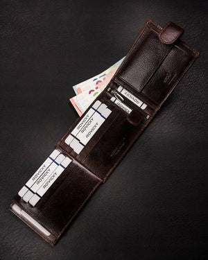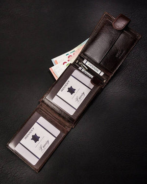 Šis vīriešu ādas maks Rovicky RV233 ir lieliska izvēle tiem, kas novērtē kvalitāti un funkcionalitāti. Izgatavots no īstas ādas, tas ir eleganti brūnā krāsā un ar lielu izmēru, kas nodrošina pietiekami daudz vietas jūsu kartēm un skaidrai naudai. Makam ir 6-10 karšu nodalījumi, un tas ir aprīkots ar RFID aizsardzību, kas palīdz aizsargāt jūsu datus no neatļautas skenēšanas. Tā kompaktie izmēri - 9,5 cm x 12,5 cm x 2 cm - ļauj to ērti nēsāt katru dienu.