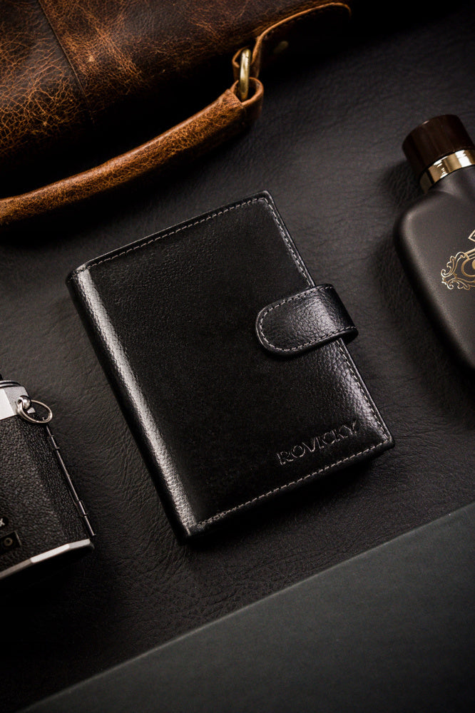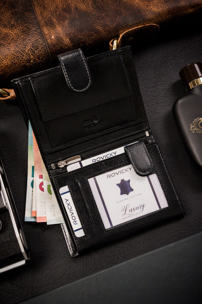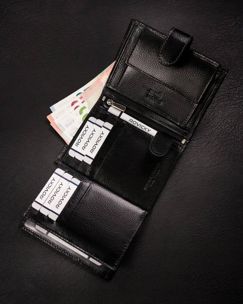 Šis elegantais vīriešu maks no Rovicky ir lieliska izvēle tiem, kas novērtē kvalitāti un stilu. Izgatavots no augstas kvalitātes īstas ādas, šis maks ne tikai izskatās grezns, bet arī ir izturīgs.