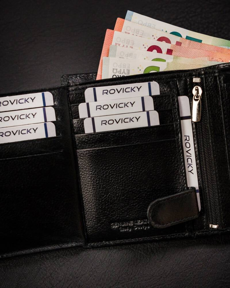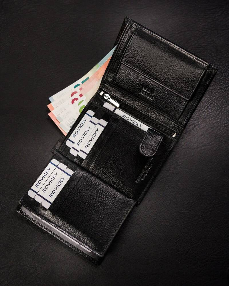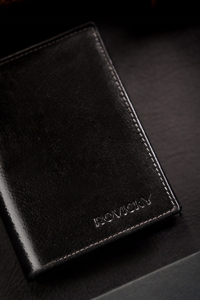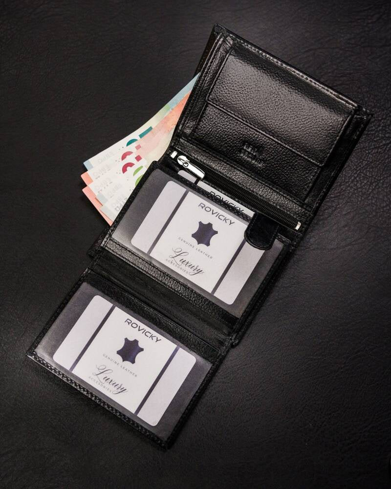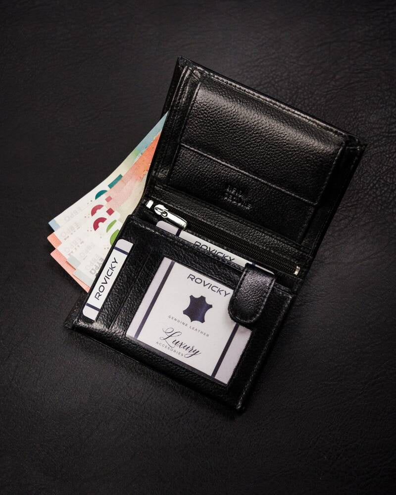 Šis elegantais vīriešu maks no Rovicky ir izgatavots no augstas kvalitātes īstas ādas, kas nodrošina izturību un stilīgu izskatu. Melnais dizains piešķir klasisku un daudzpusīgu izskatu, kas piemērots jebkuram gadījumam.