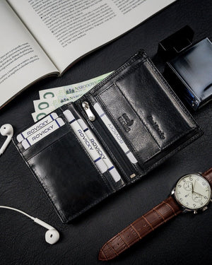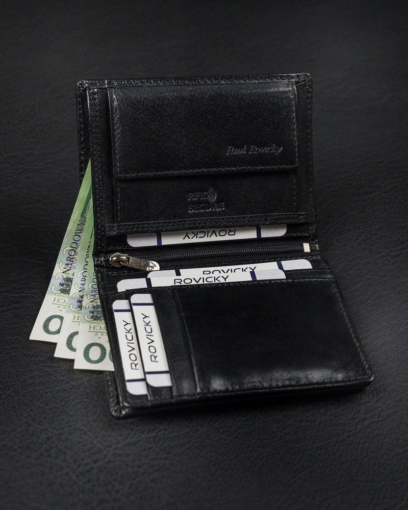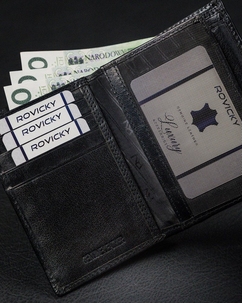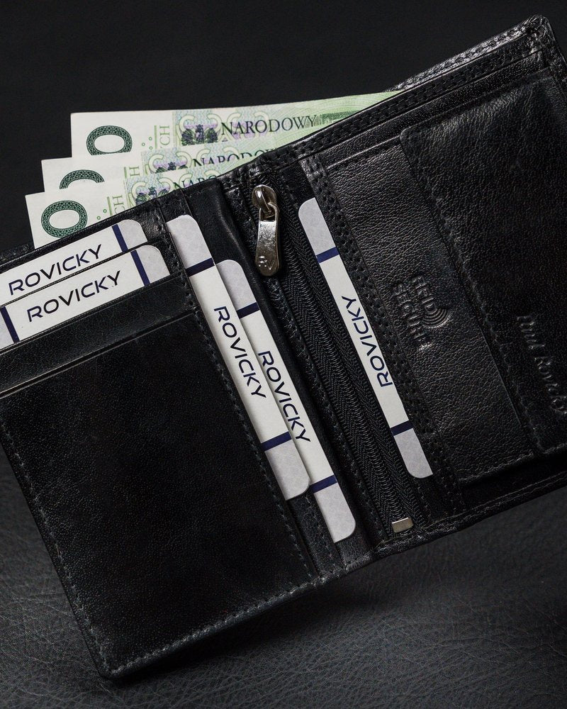 Šis vīriešu ādas maks Rovicky RV28 ir lieliska izvēle tiem, kas novērtē kvalitāti un funkcionalitāti. Izgatavots no īstas ādas, tas ne tikai izskatās eleganti, bet arī ir izturīgs. Melnā krāsa nodrošina klasisku un daudzpusīgu stilu, kas piemērots jebkuram gadījumam. Makam ir RFID aizsardzība, lai nodrošinātu jūsu karšu drošību. Ar 6-10 karšu nodalījumiem tas ir pietiekami ietilpīgs, lai tajā varētu ievietot visus jūsu svarīgos dokumentus un kartes.