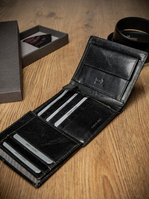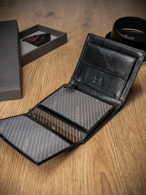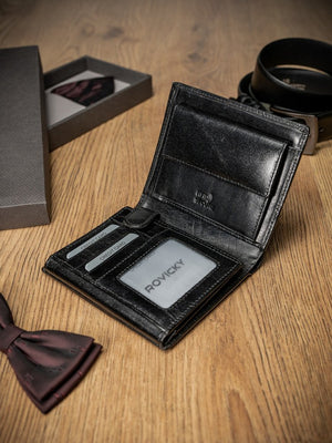 Šis vīriešu ādas maks Rovicky RV3 ir lieliska izvēle tiem, kas novērtē kvalitāti un funkcionalitāti. Izgatavots no īstas ādas, tas ne tikai izskatās eleganti, bet arī ir izturīgs. Melnā krāsa nodrošina klasisku un daudzpusīgu stilu, kas piemērots jebkuram gadījumam.