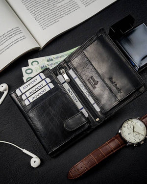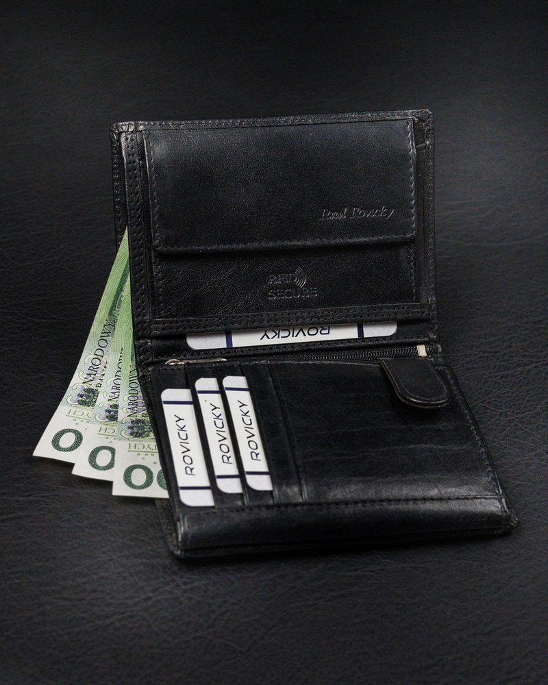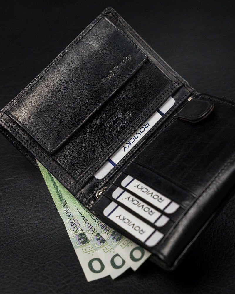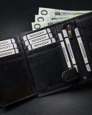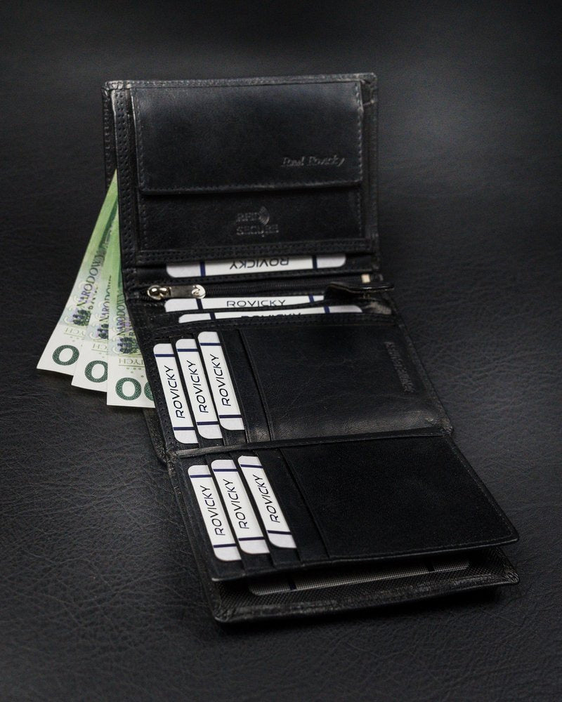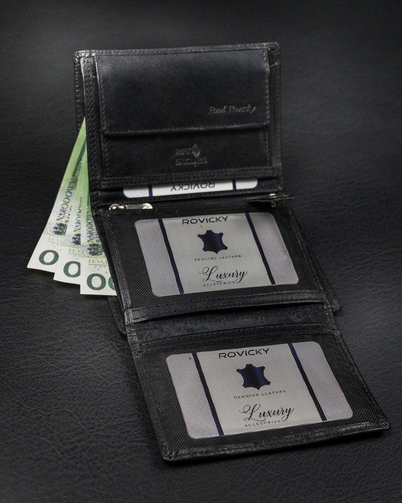 Šis elegantais vīriešu maks no Rovicky ir izgatavots no augstas kvalitātes īstas ādas, nodrošinot izturību un stilīgu izskatu.