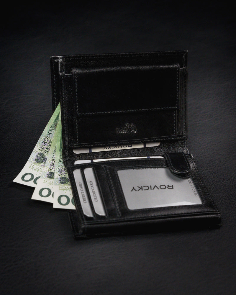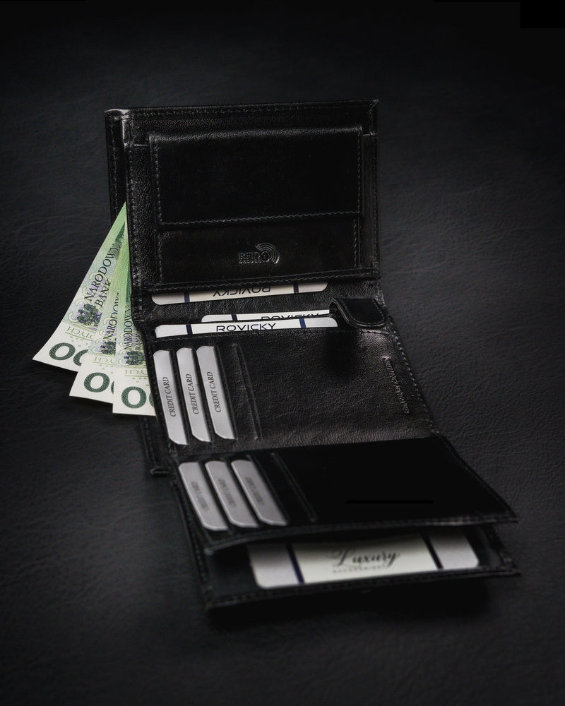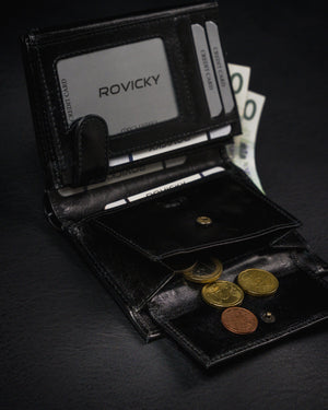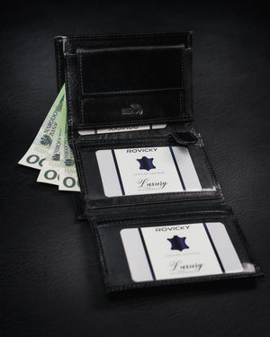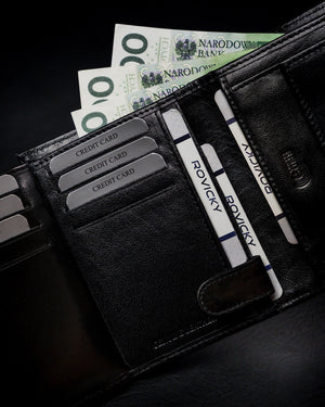 Vīriešu ādas maks Rovicky RV49 ir eleganta un funkcionāla izvēle, kas izgatavota no augstas kvalitātes dabīgas pilngraudu ādas. Melnā krāsa nodrošina klasisku un daudzpusīgu stilu, kas piemērots jebkuram gadījumam. Lielais izmērs nodrošina, ka jums būs pietiekami daudz vietas visām jūsu kartēm un skaidrai naudai, un vairāk nekā 10 karšu nodalījumi ļaus ērti organizēt savas finanses. Turklāt RFID aizsardzība palīdzēs aizsargāt jūsu datus no nevēlamas skenēšanas. Šis maks ir lieliska izvēle tiem, kas novērtē kvalitāti un drošību.