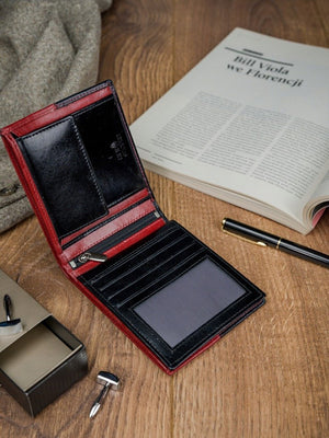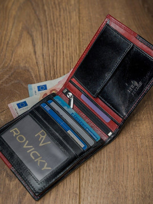 Vīriešu ādas maks Rovicky RV5 ir elegants un funkcionāls aksesuārs, kas izgatavots no augstas kvalitātes īstas ādas. Melnā krāsa nodrošina klasisku un daudzpusīgu stilu, kas piemērots jebkuram gadījumam. Makam ir RFID aizsardzība, lai nodrošinātu jūsu karšu drošību. Ar vairāk nekā 10 karšu nodalījumiem tas ir ideāli piemērots tiem, kas novērtē ērtības un organizētību. Kompaktie izmēri ļauj to viegli ievietot kabatā vai somā.