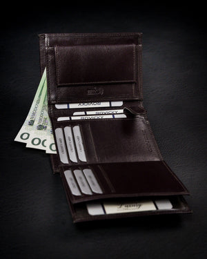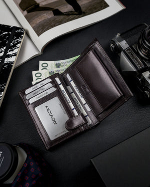 Šis Rovicky vīriešu maks ir izgatavots no augstas kvalitātes īstas ādas, kas nodrošina izturību un eleganci. Brūnais dizains piešķir tam klasisku un stilīgu izskatu.