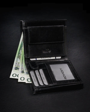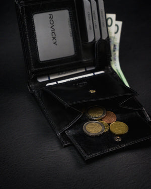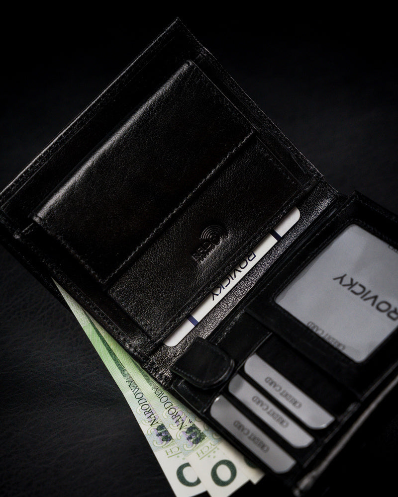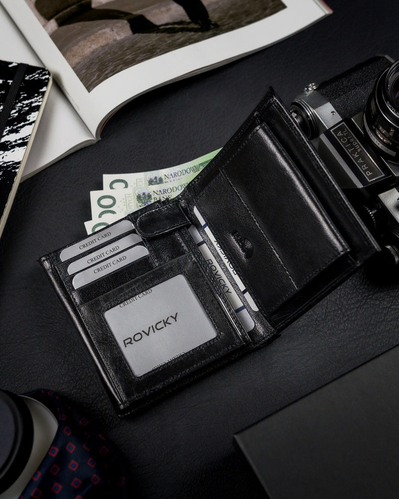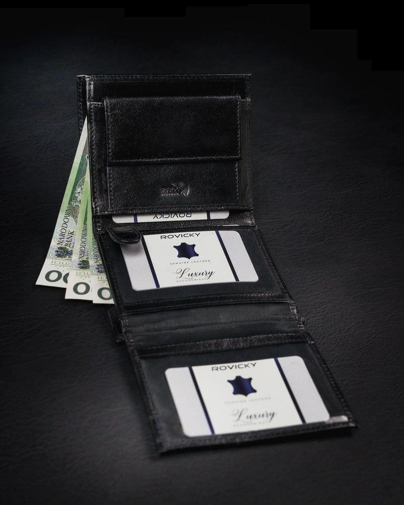 Šis elegantais vīriešu maks no Rovicky ir izgatavots no augstas kvalitātes dabīgas pilngraudu ādas, kas nodrošina izturību un stilīgu izskatu.