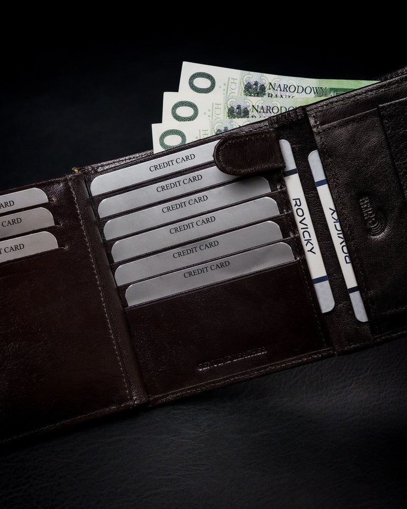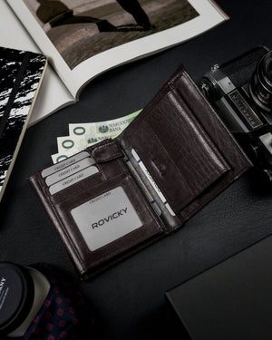 Šis vīriešu maks Rovicky RV55 ir lieliska izvēle tiem, kas novērtē kvalitāti un funkcionalitāti. Izgatavots no dabīgas pilngraudu ādas, šis maks ir izturīgs un eleganta izskata.