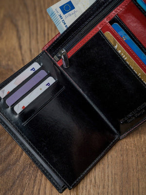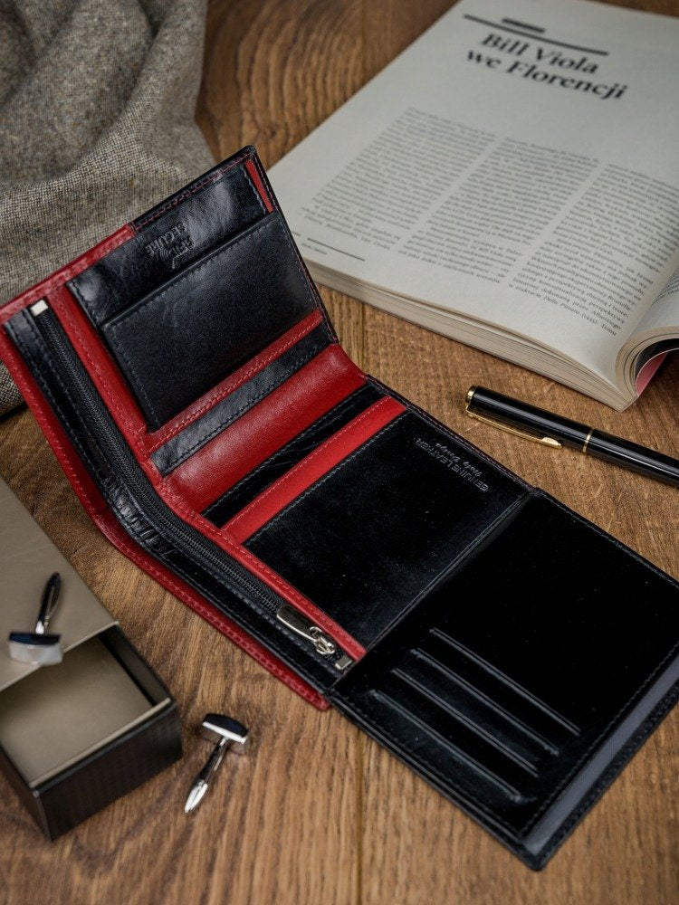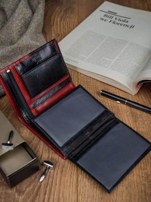 Šis vīriešu ādas maks Rovicky RV6 ir lieliska izvēle tiem, kas novērtē kvalitāti un funkcionalitāti. Izgatavots no īstas ādas, tam ir elegants dizains un tas ir pieejams divās krāsās: melnā un sarkanā. Makam ir vairāk nekā 10 karšu nodalījumi, tāpēc tajā var ērti ievietot visas nepieciešamās kartes. Turklāt tas ir aprīkots ar RFID aizsardzību, kas nodrošina jūsu datu drošību. Pateicoties lielajam izmēram un ērtiem izmēriem, šis maks ir praktisks un stilīgs ikdienas lietošanai.