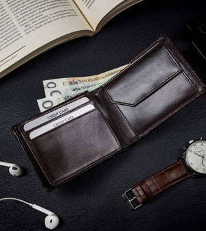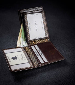 Šis Rovicky vīriešu maks ir izgatavots no augstas kvalitātes īstas ādas, kas nodrošina izturību un eleganci. Brūnais dizains piešķir tam klasisku un stilīgu izskatu.