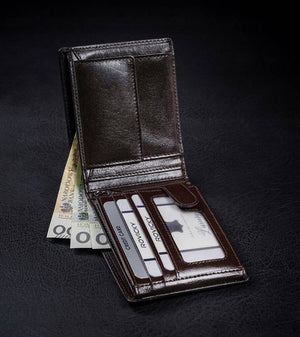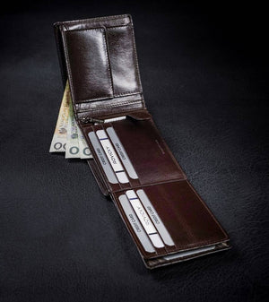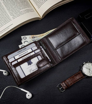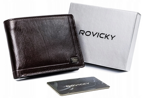Šis Rovicky vīriešu maks ir izgatavots no augstas kvalitātes īstas ādas, kas nodrošina izturību un eleganci. Brūnais dizains piešķir tam klasisku un stilīgu izskatu.