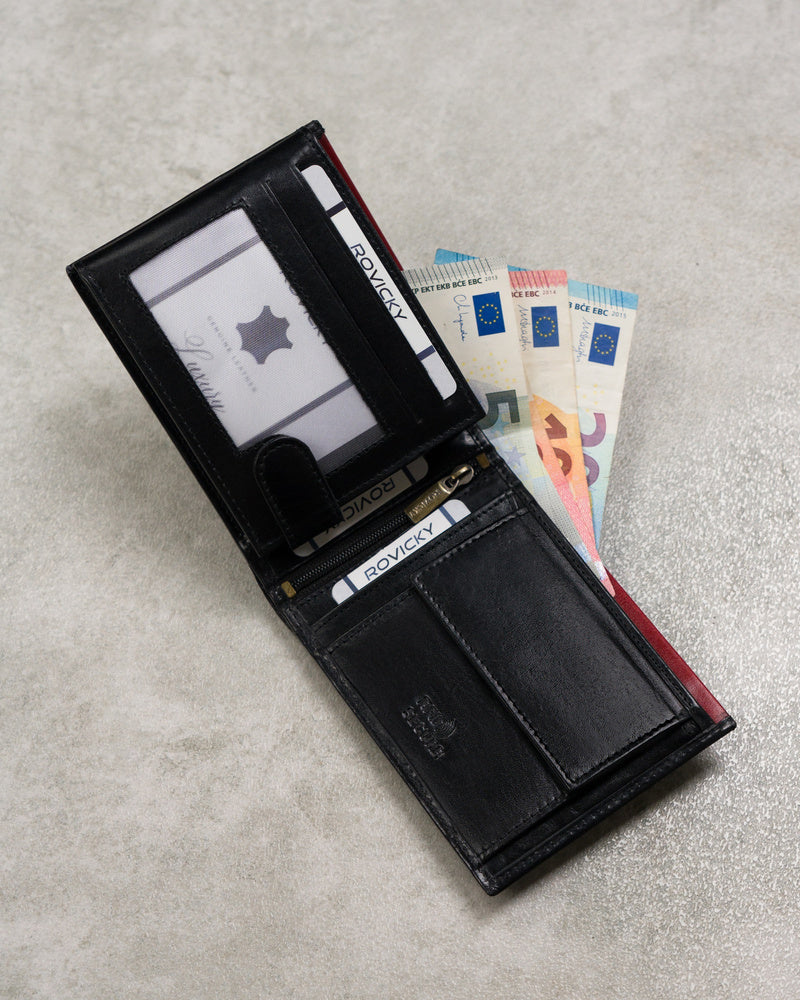 Vīriešu ādas maks Rovicky RV89 ir elegants un funkcionāls aksesuārs, kas izgatavots no augstas kvalitātes īstas ādas. Melnā krāsa nodrošina klasisku un daudzpusīgu stilu, kas piemērots dažādiem gadījumiem. Makam ir RFID aizsardzība, kas nodrošina jūsu karšu drošību. Vidēja izmēra maks ērti iederas kabatā, un tā iekšpusē atradīsiet pietiekami daudz nodalījumu kartēm un citiem sīkumiem. Šī ir lieliska izvēle tiem, kas novērtē kvalitāti un praktiskumu.