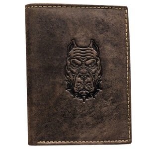 Vīriešu ādas maks, brūns, ar suņa galvas apdruku