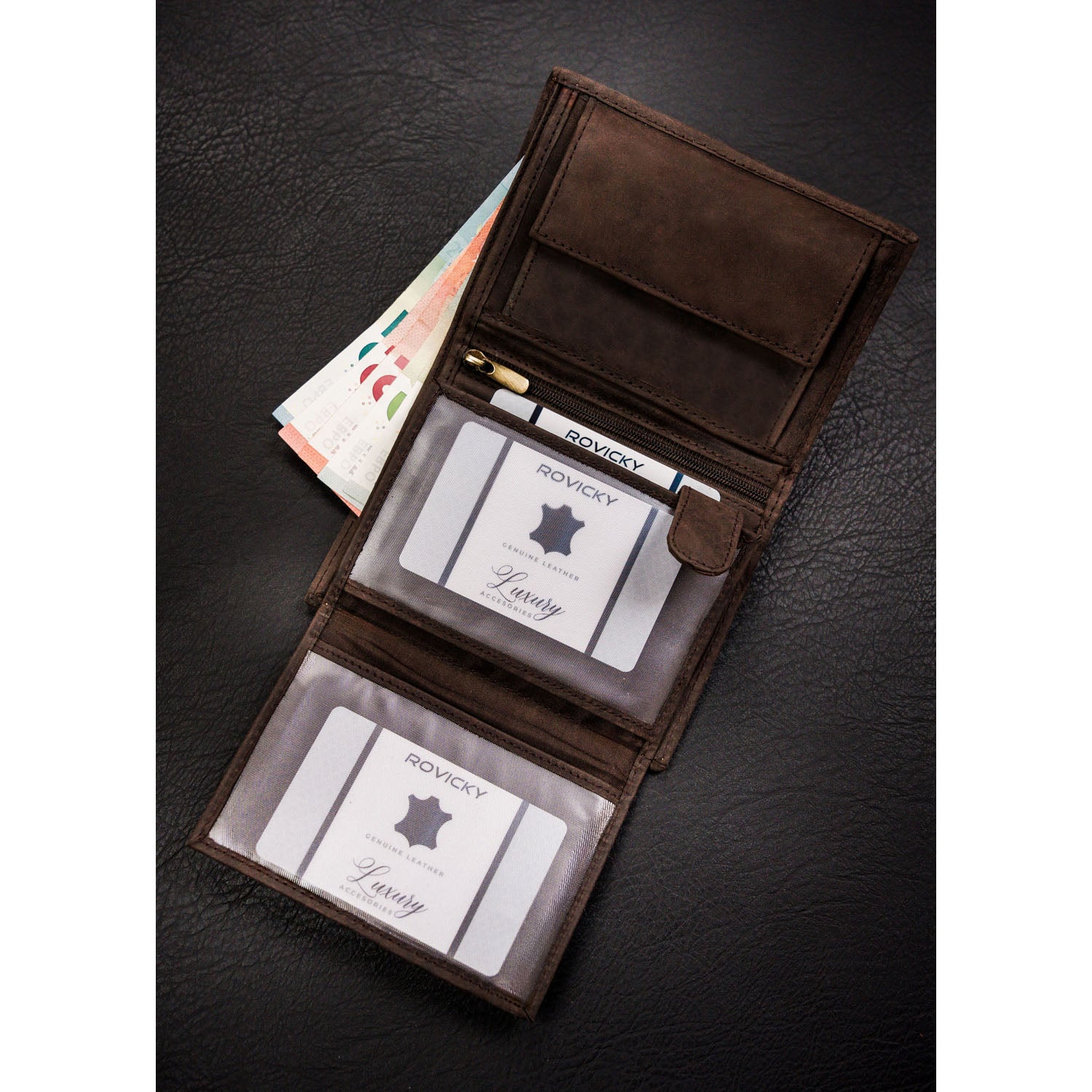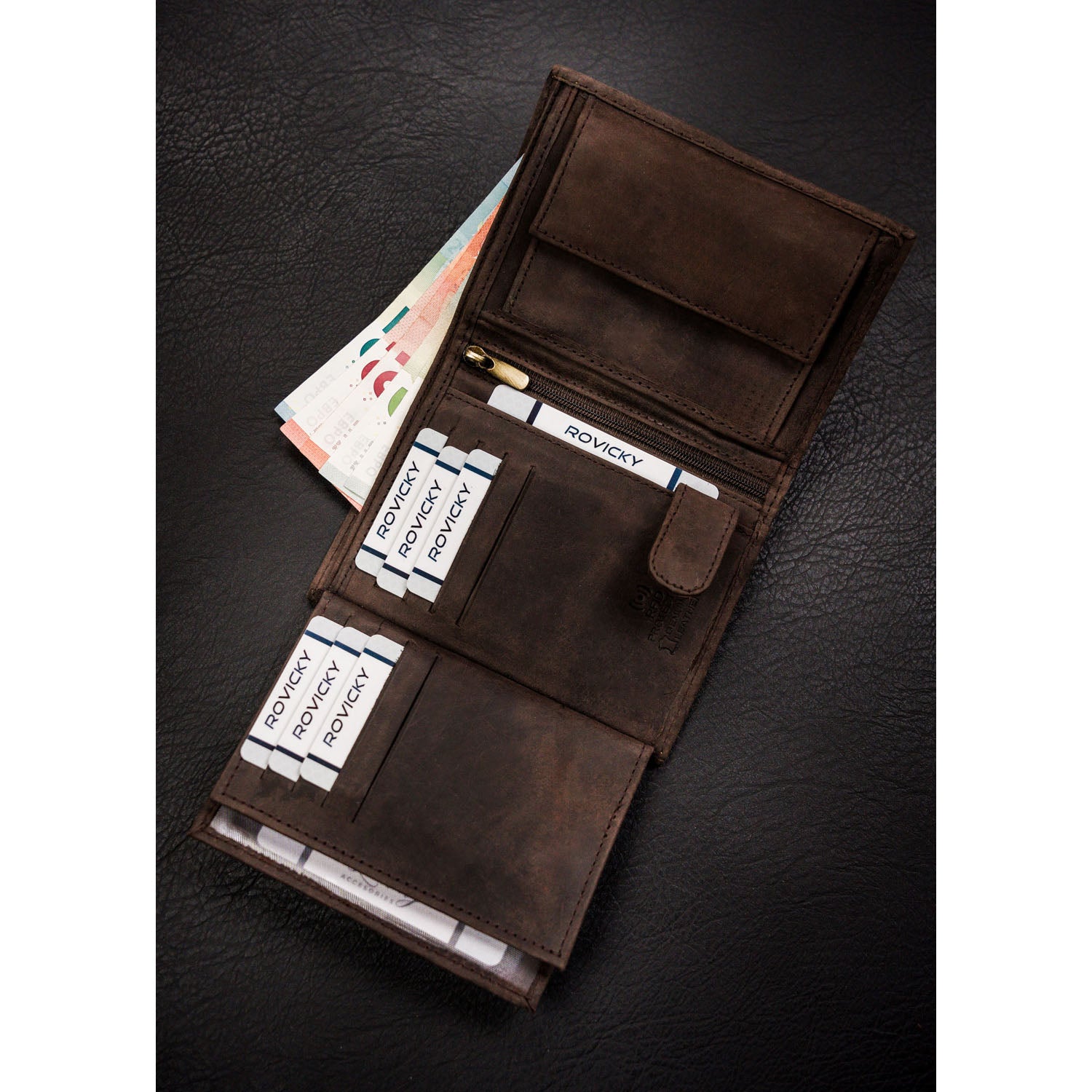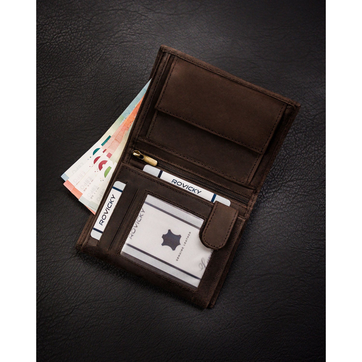 Šis vīriešu ādas maks ir lieliska izvēle tiem, kas novērtē kvalitāti un stilu. Izgatavots no īstas ādas un zamšādas/nubuka, tam ir tumši brūna krāsa un vertikāla orientācija. Lielais maks ir ideāli piemērots ikdienas lietošanai pilsētā.