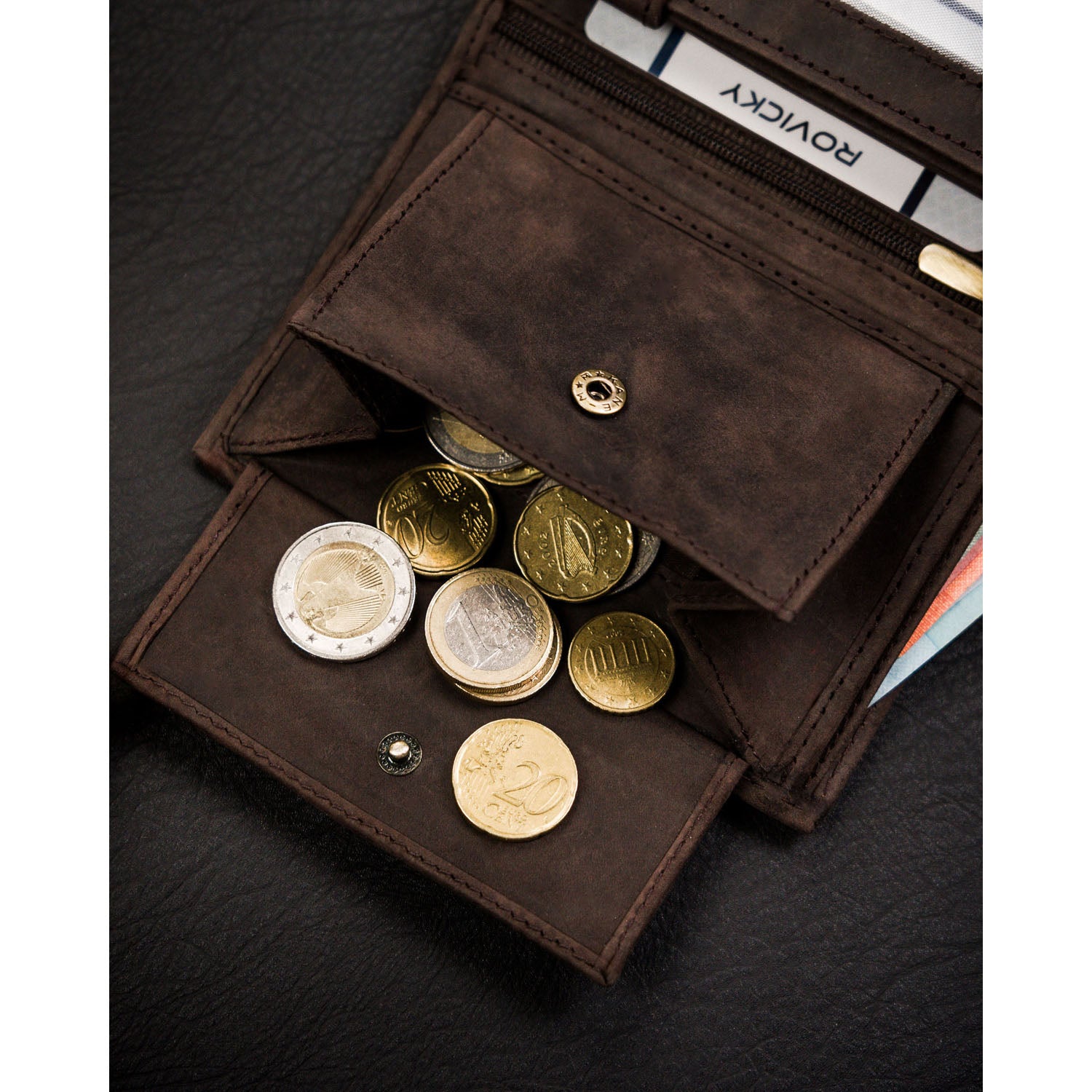- Monētu kabata: spiedpogas aizdare