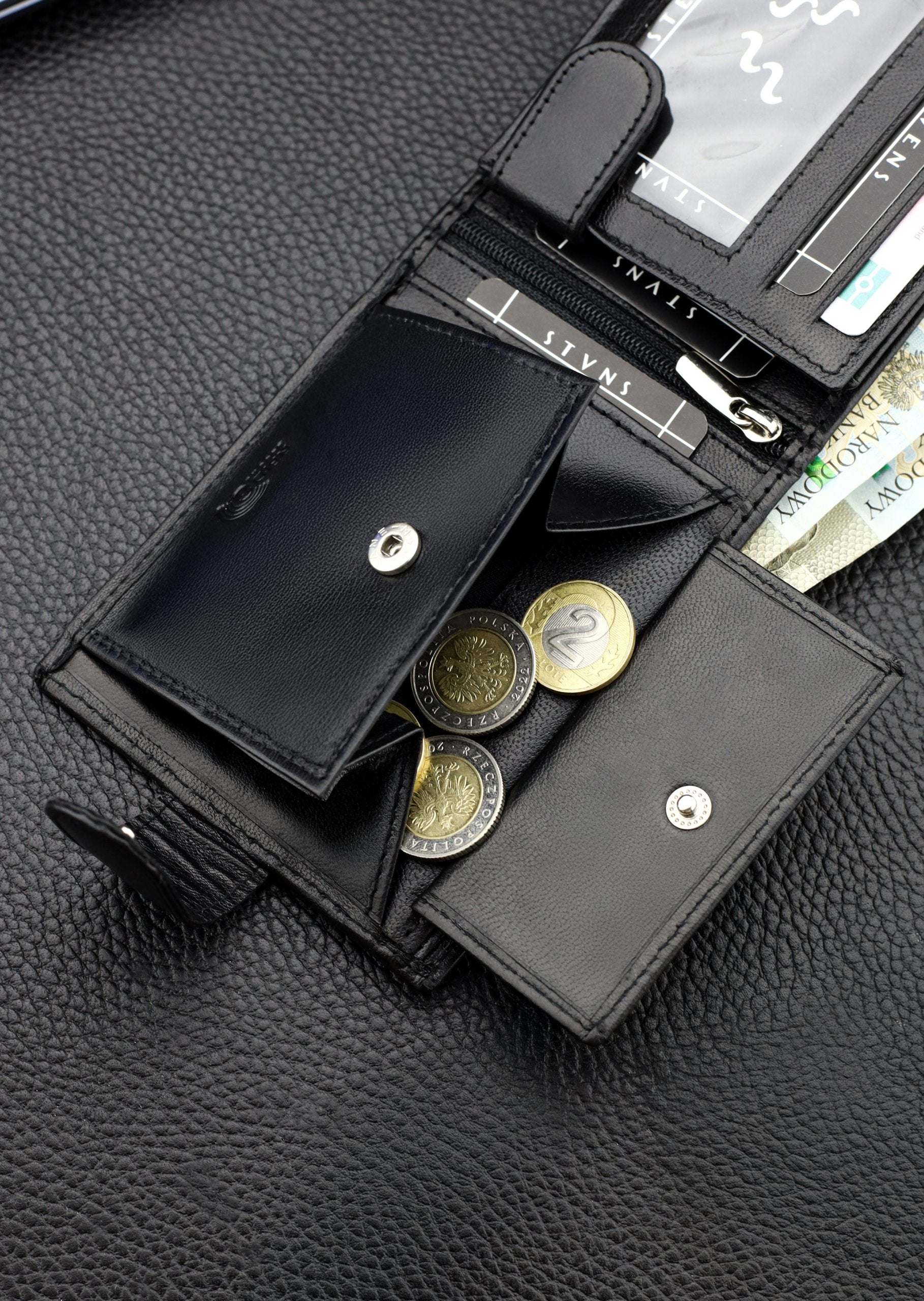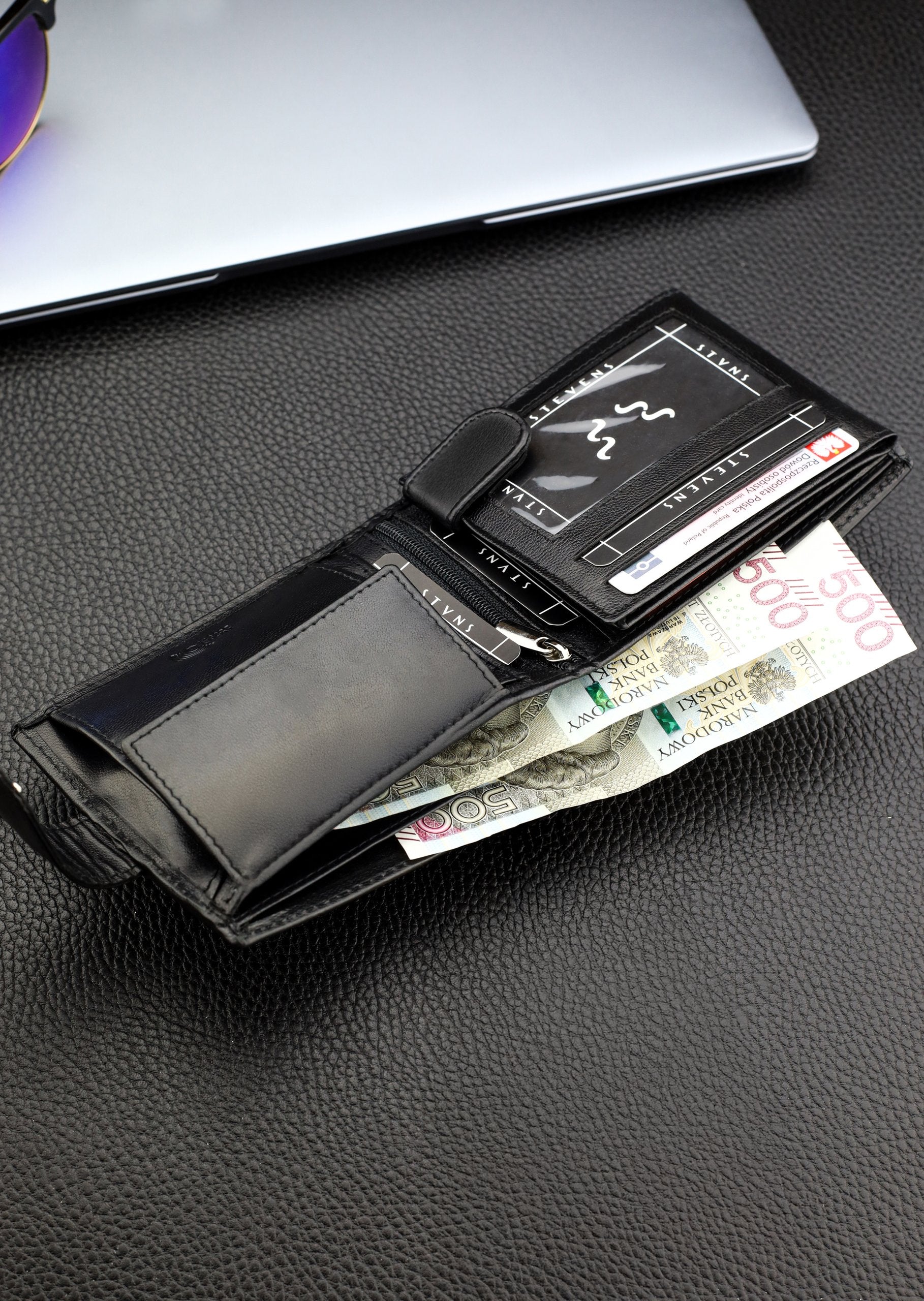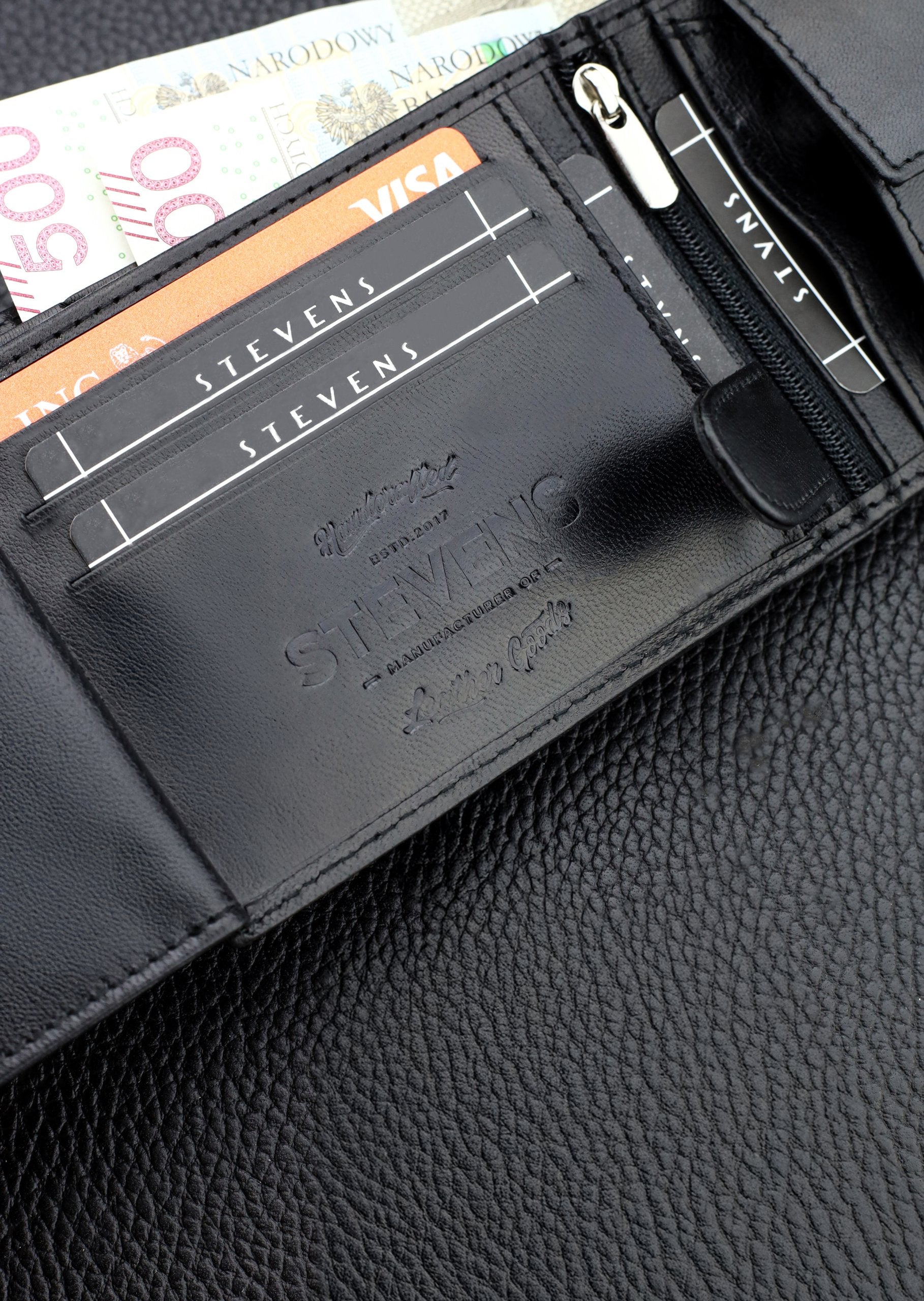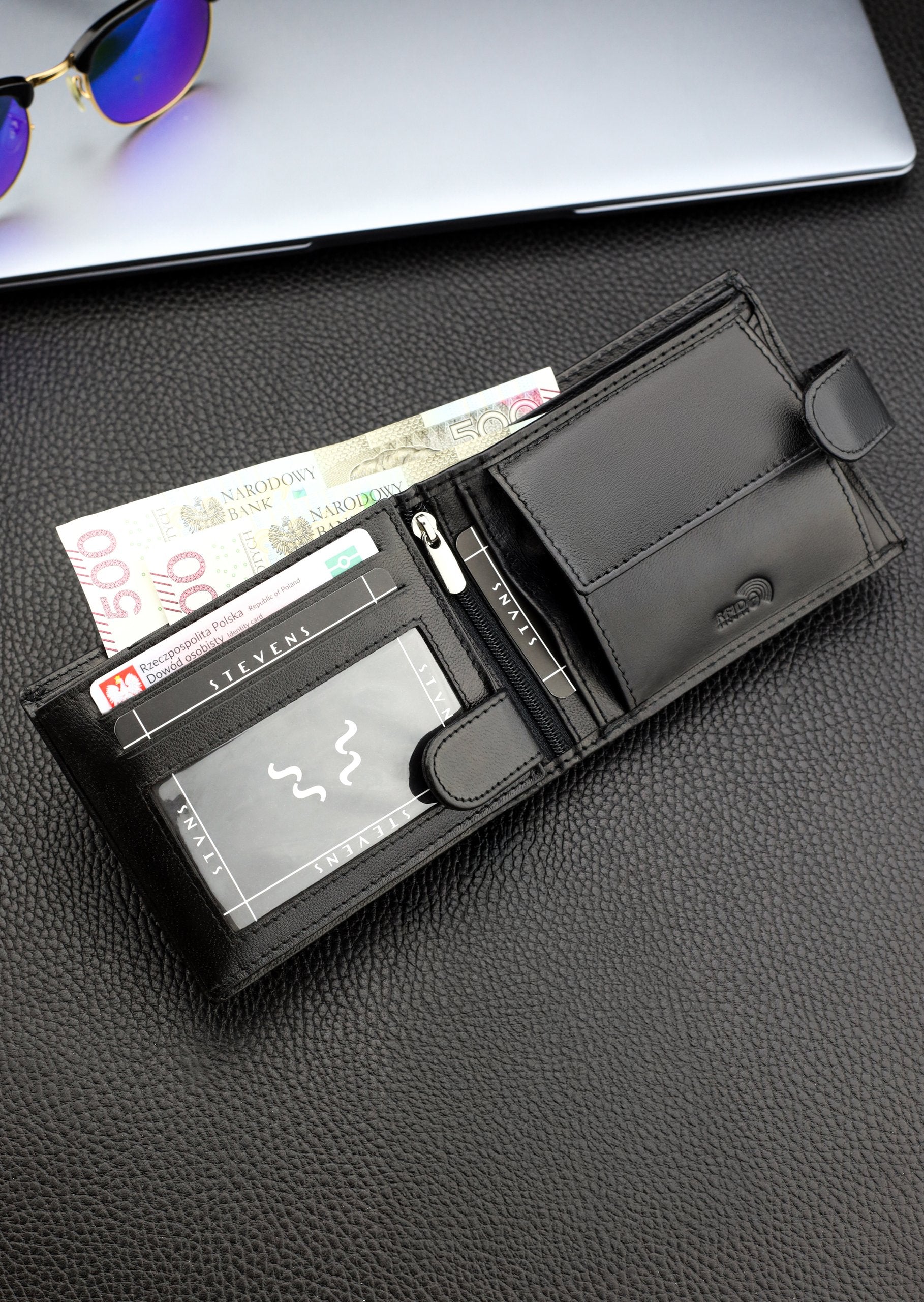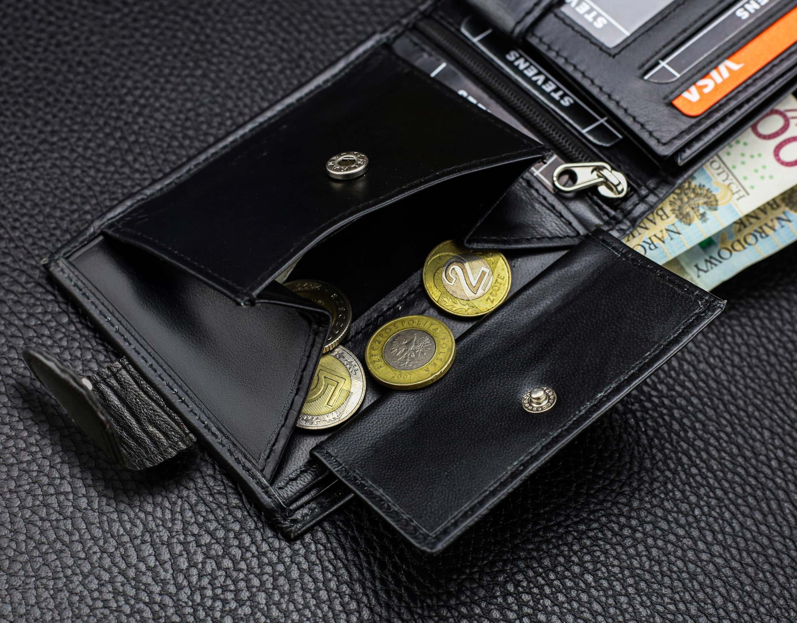 Skórzany portfolio damski STEVENS RFID skóra Czarny Q2 Marka Stevens Vīriešu ādas maks Stevens Z3-325A, melns