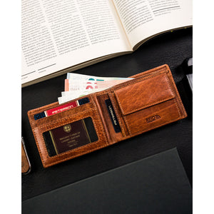 Vīriešu ādas maks ar RFID identifikāciju, brūns S162