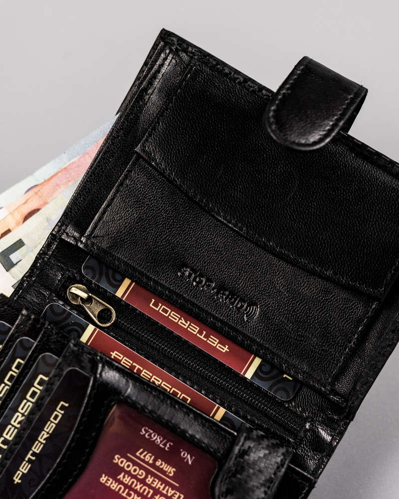 Šis lielais vīriešu ādas maks no Peterson ir lieliska izvēle tiem, kas novērtē funkcionalitāti un stilu. Maka dizains nodrošina, ka tajā ērti varēs ievietot visas jūsu ikdienas kartes, dokumentus un skaidru naudu. Iekšpuse ir izklāta ar logotipa apdruku, kas aizsargā ādu no bojājumiem.