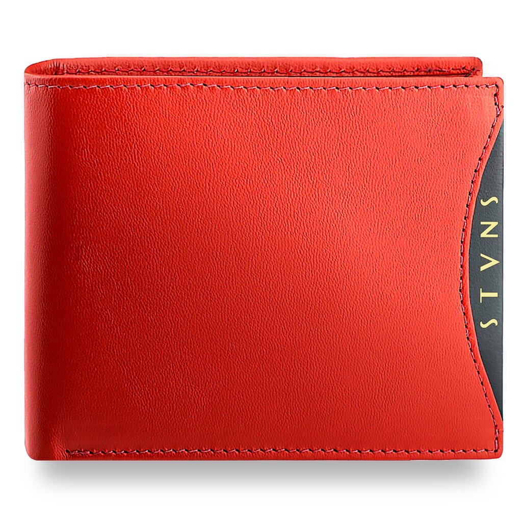 Vīriešu maks STEVENS, īsta āda, RFID, melni sarkans