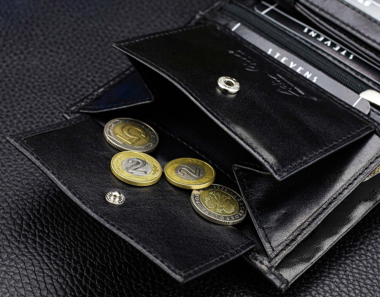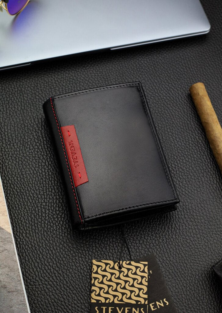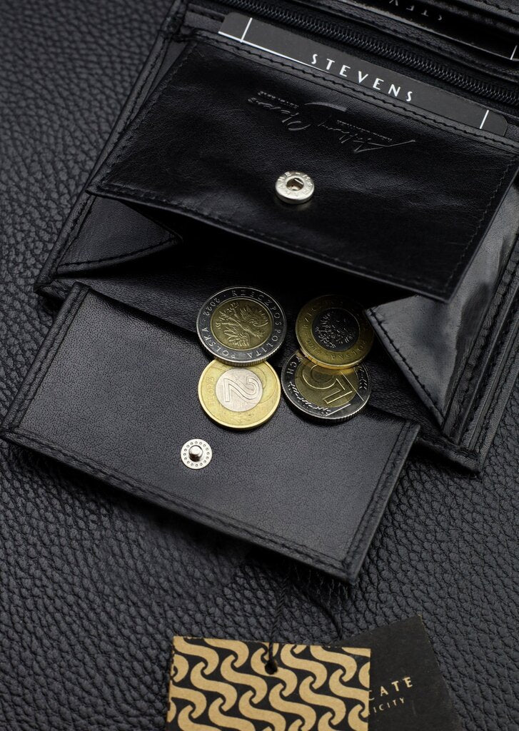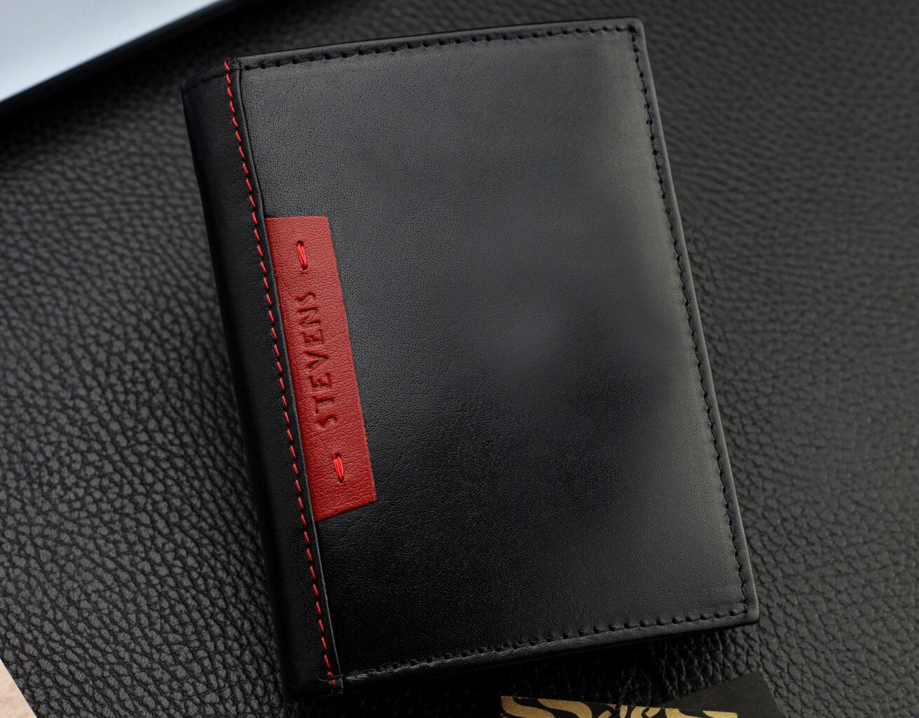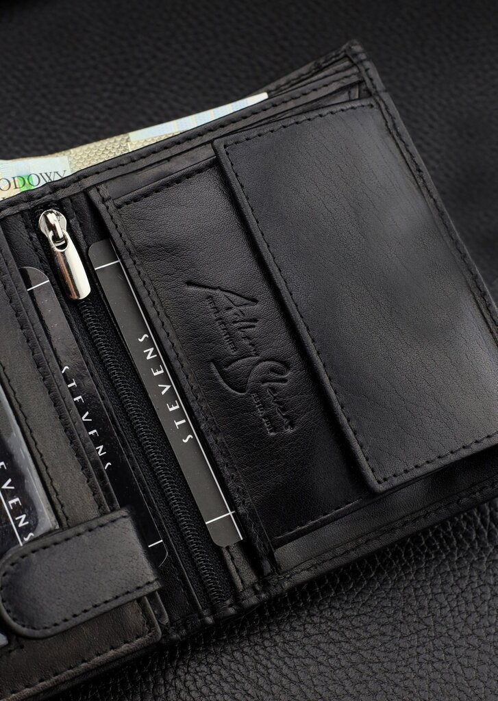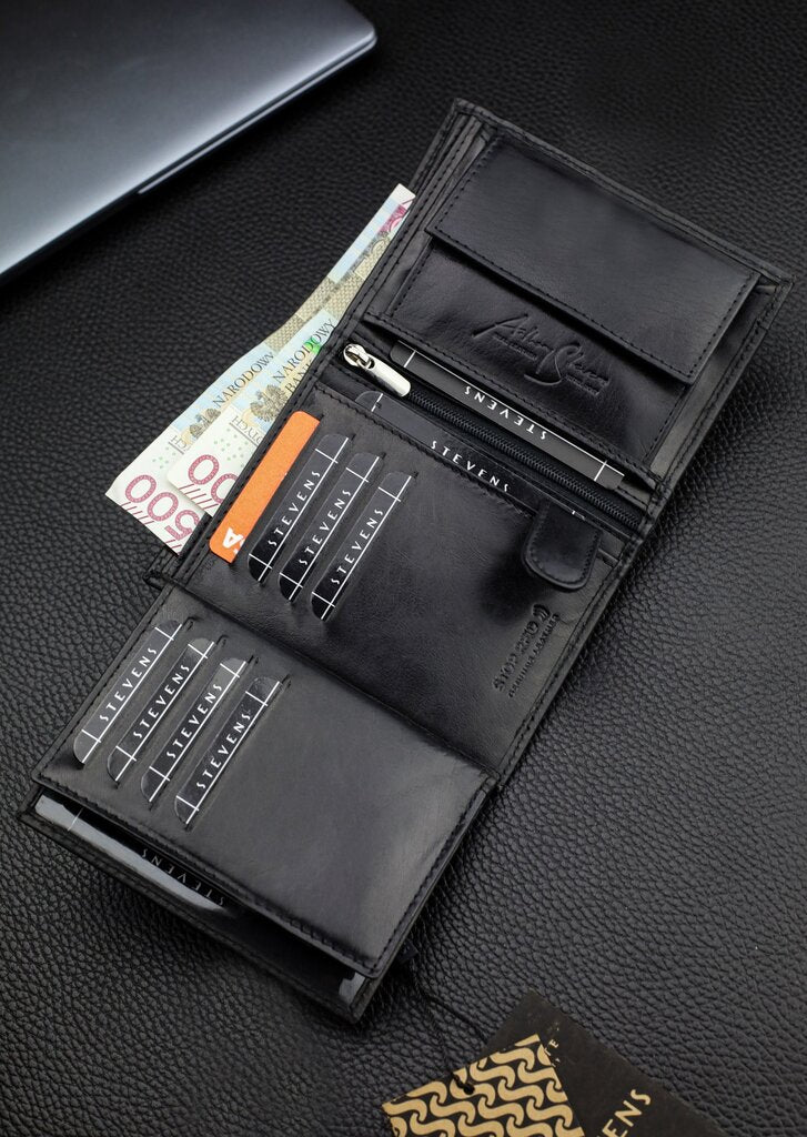 Vīriešu maks STEVENS, īsta āda, RFID, melns ar nodalījumu ar atloku