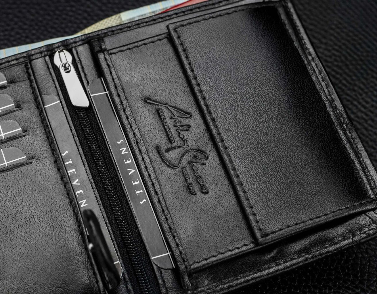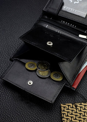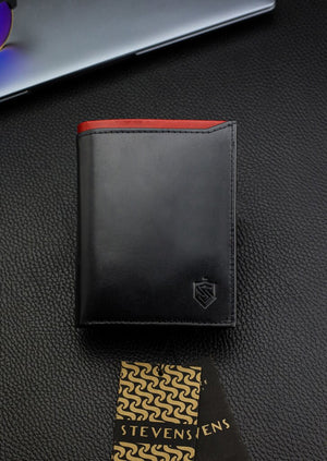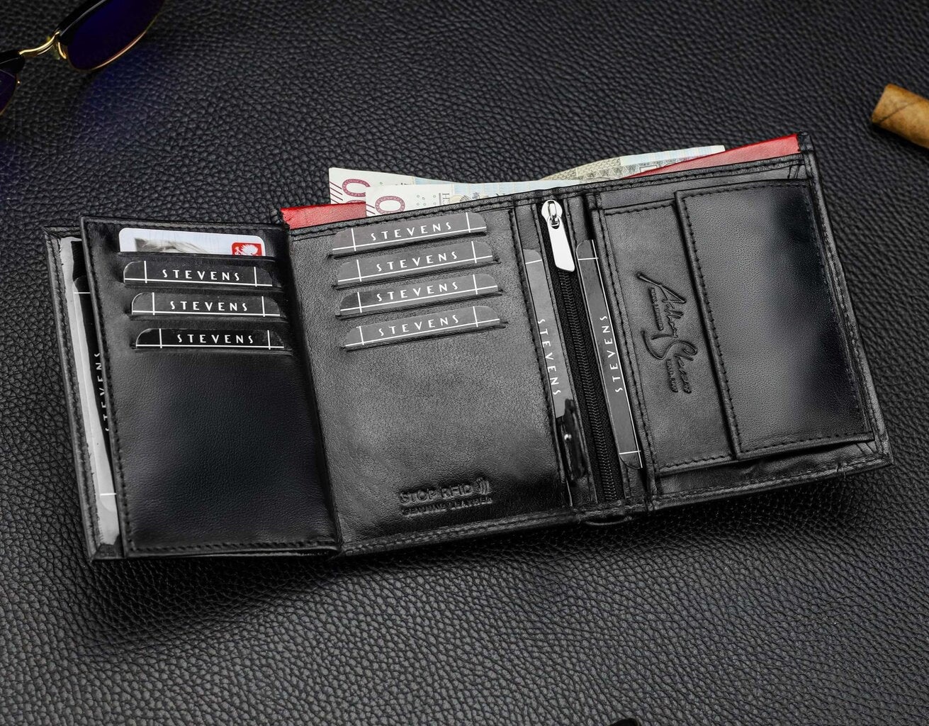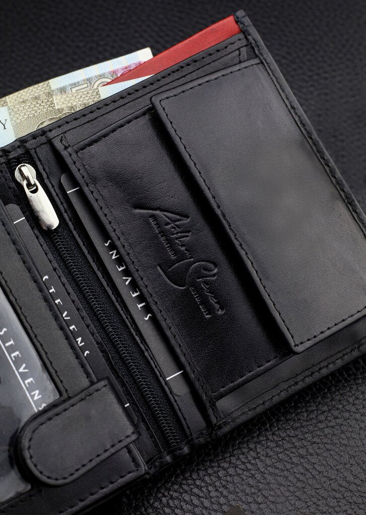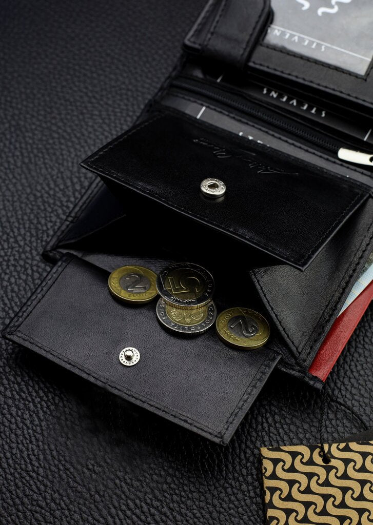 Vīriešu maks STEVENS PREMIUM, īsta āda, RFID, melns, Q3