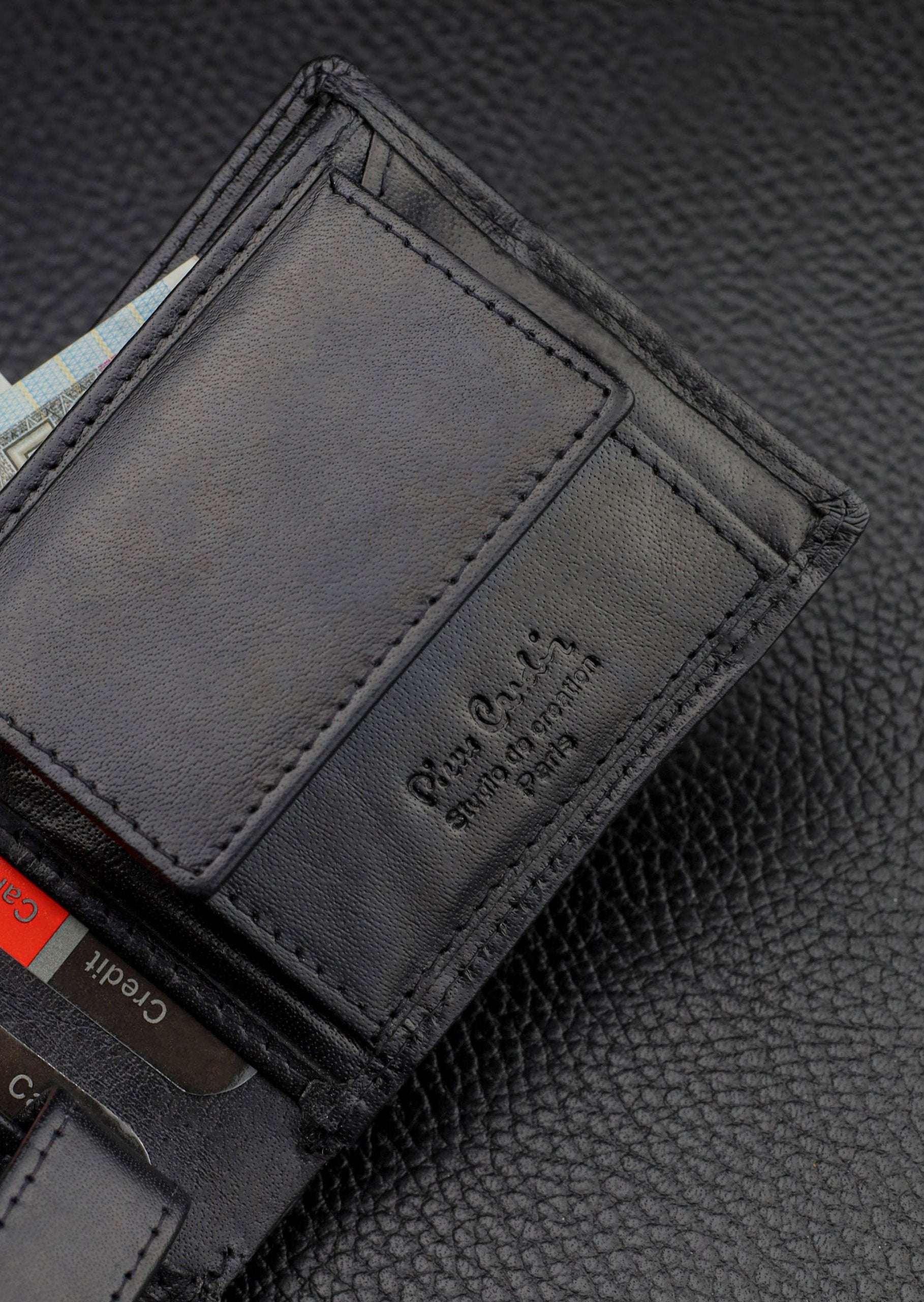 Vīriešu ādas maks Pierre Cardin, melns, RFID aizsardzība 323706