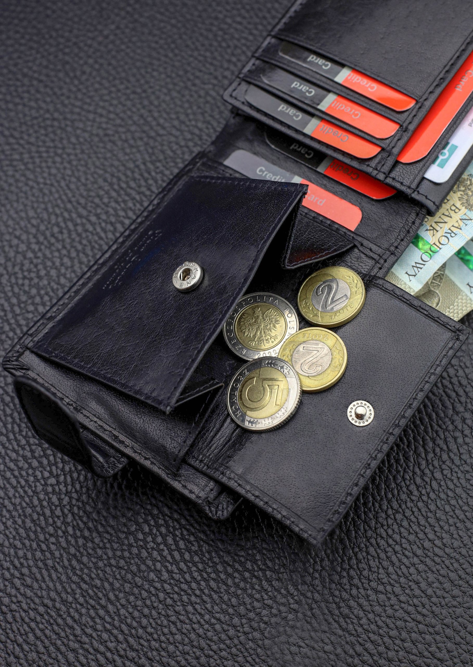 - ✅ 2 nodalījumi banknotēm (der visām PLN un EUR nominālvērtībām),