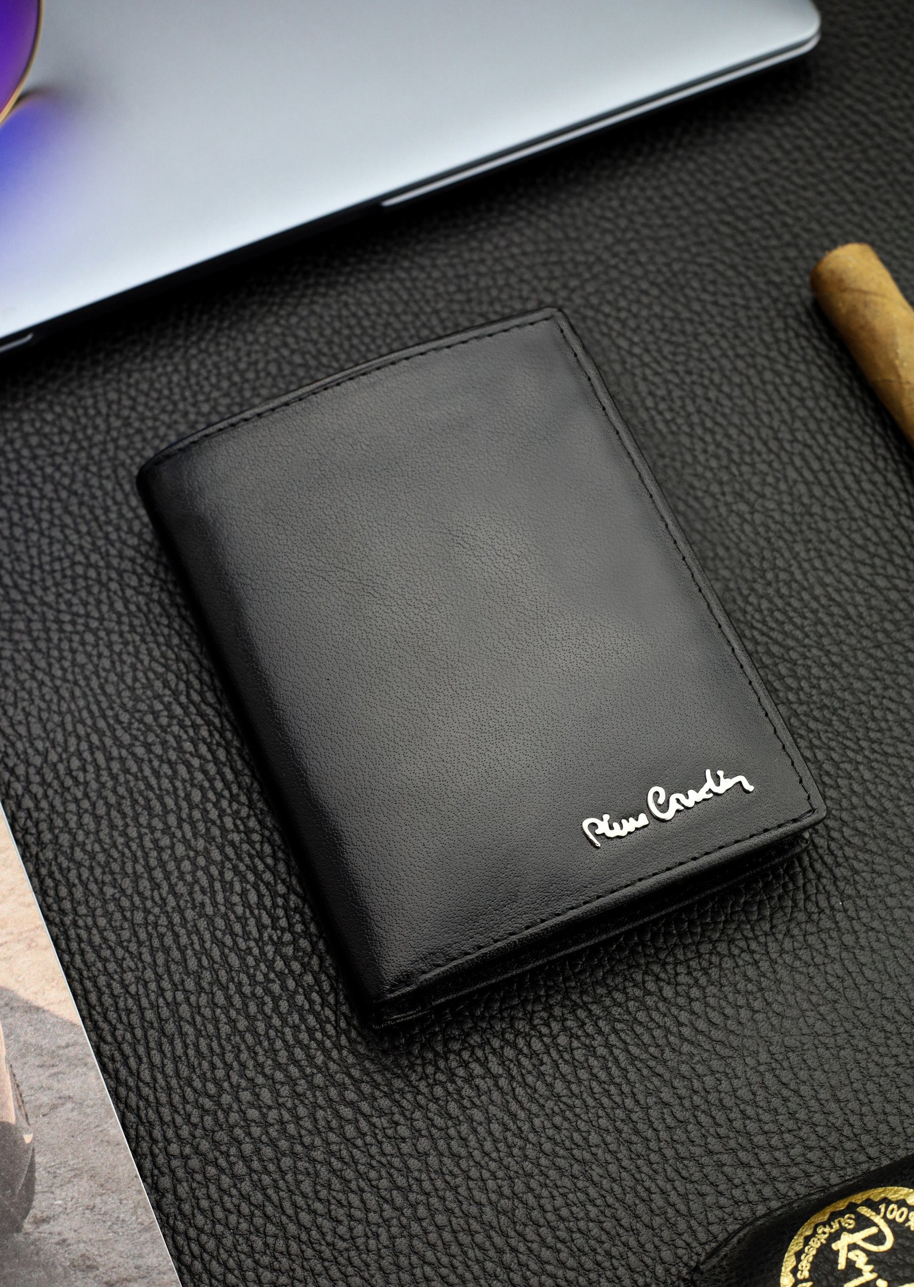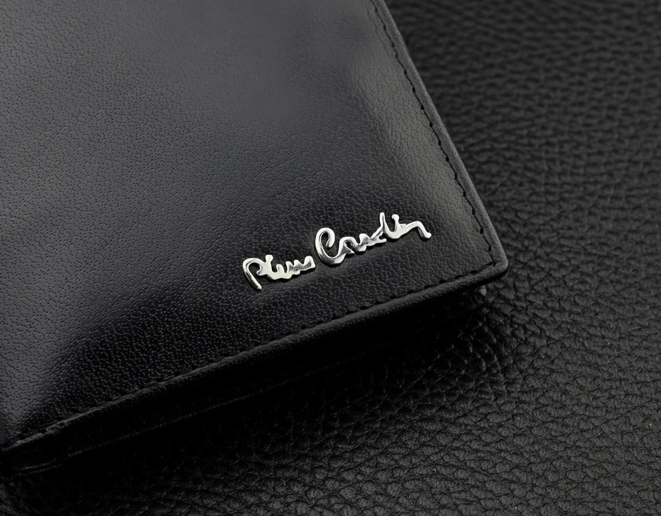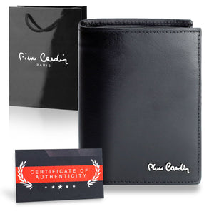 Vīriešu ādas maks Pierre Cardin, melns, RFID + dāvanu maisiņš • Sertifikāts Q1