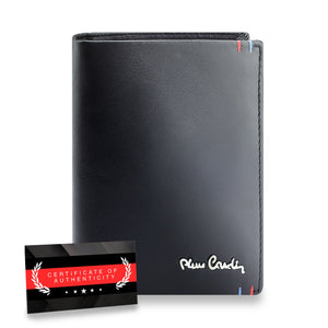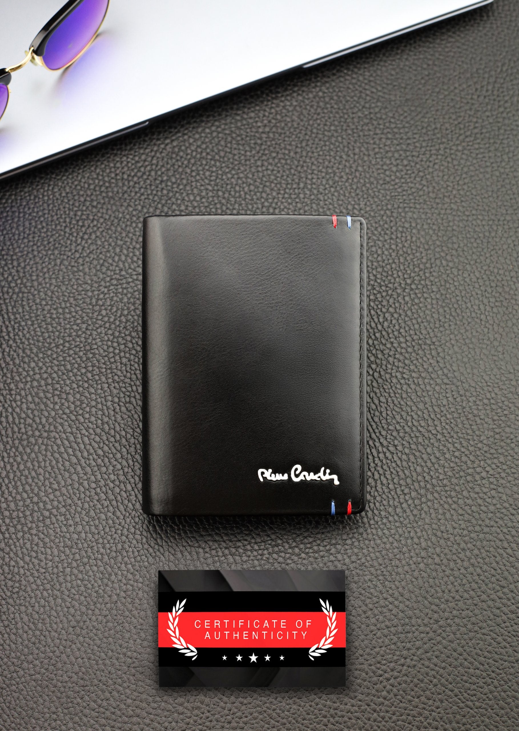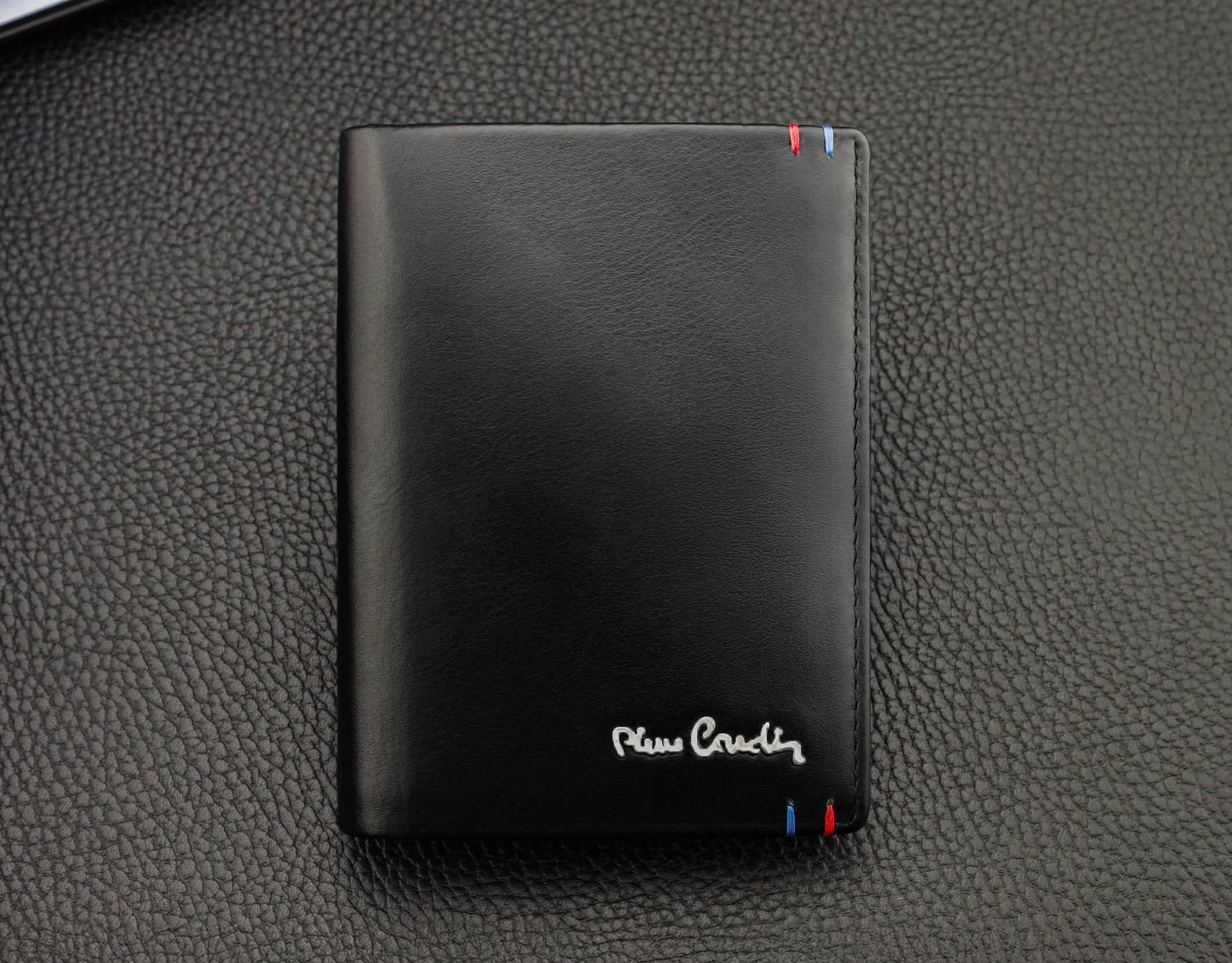 PIERRE CARDIN • Vīriešu ādas maks Q3 • Melns • Vertikāls • RFID • Liela ietilpība • Bez ārējas aizdares