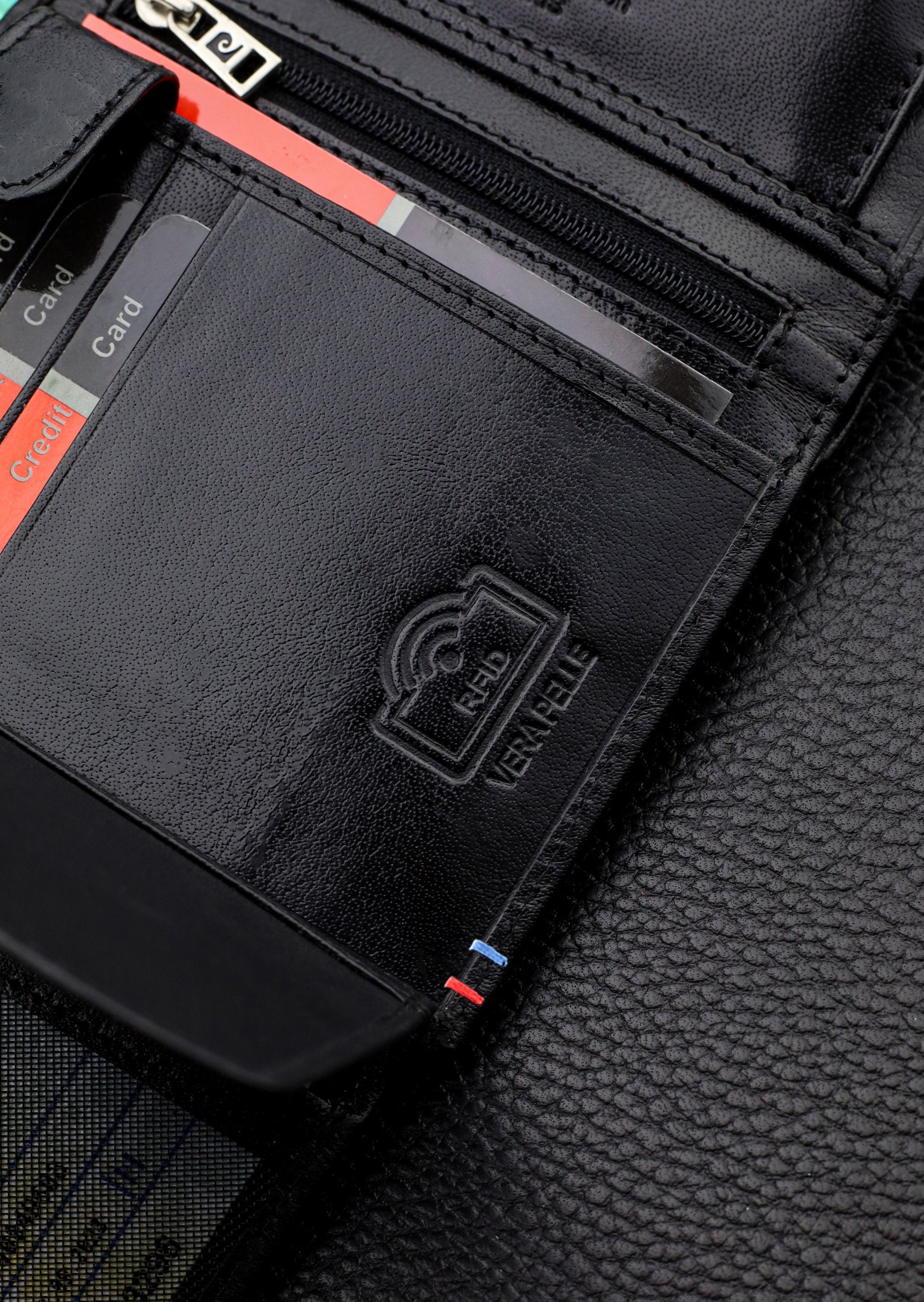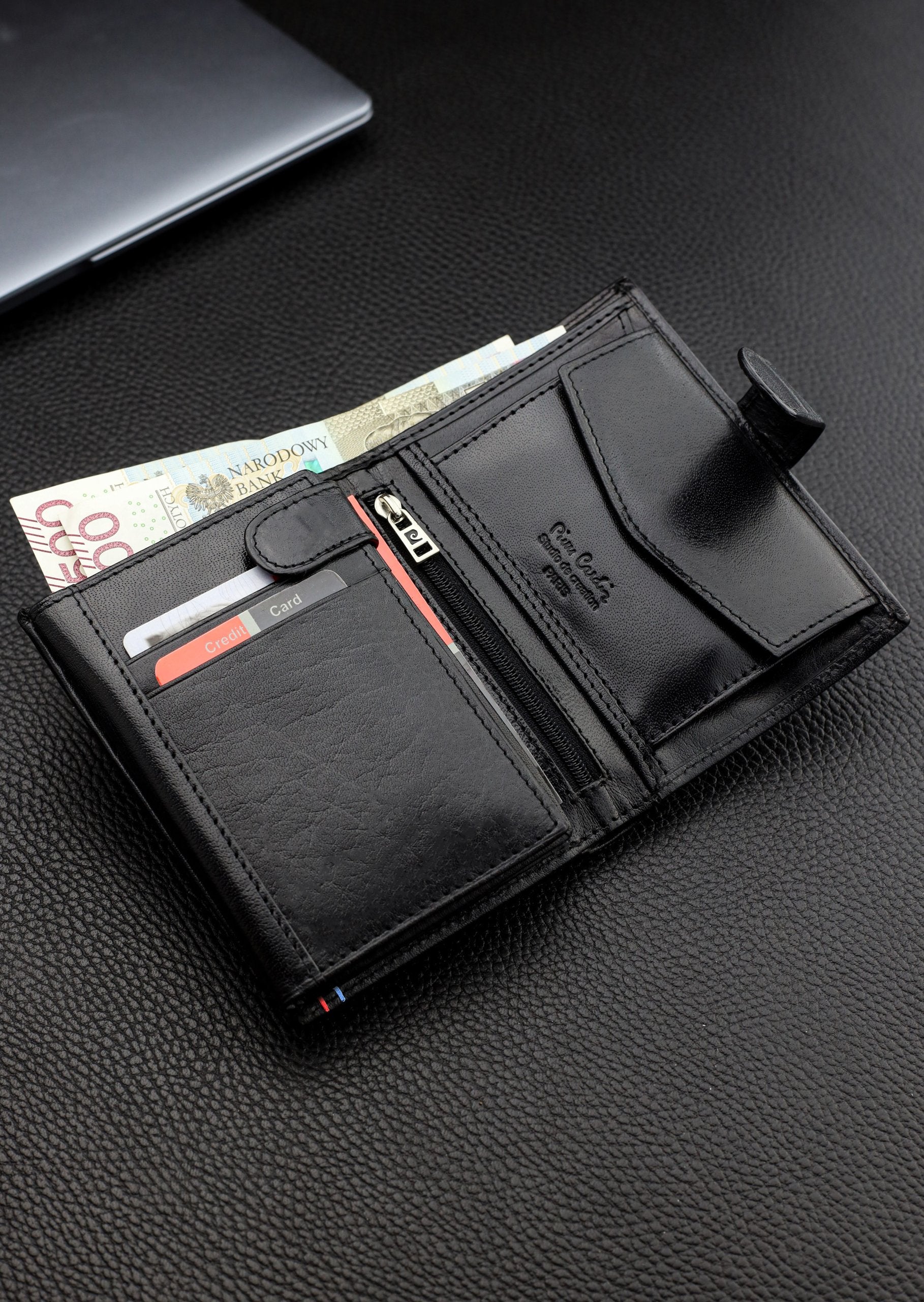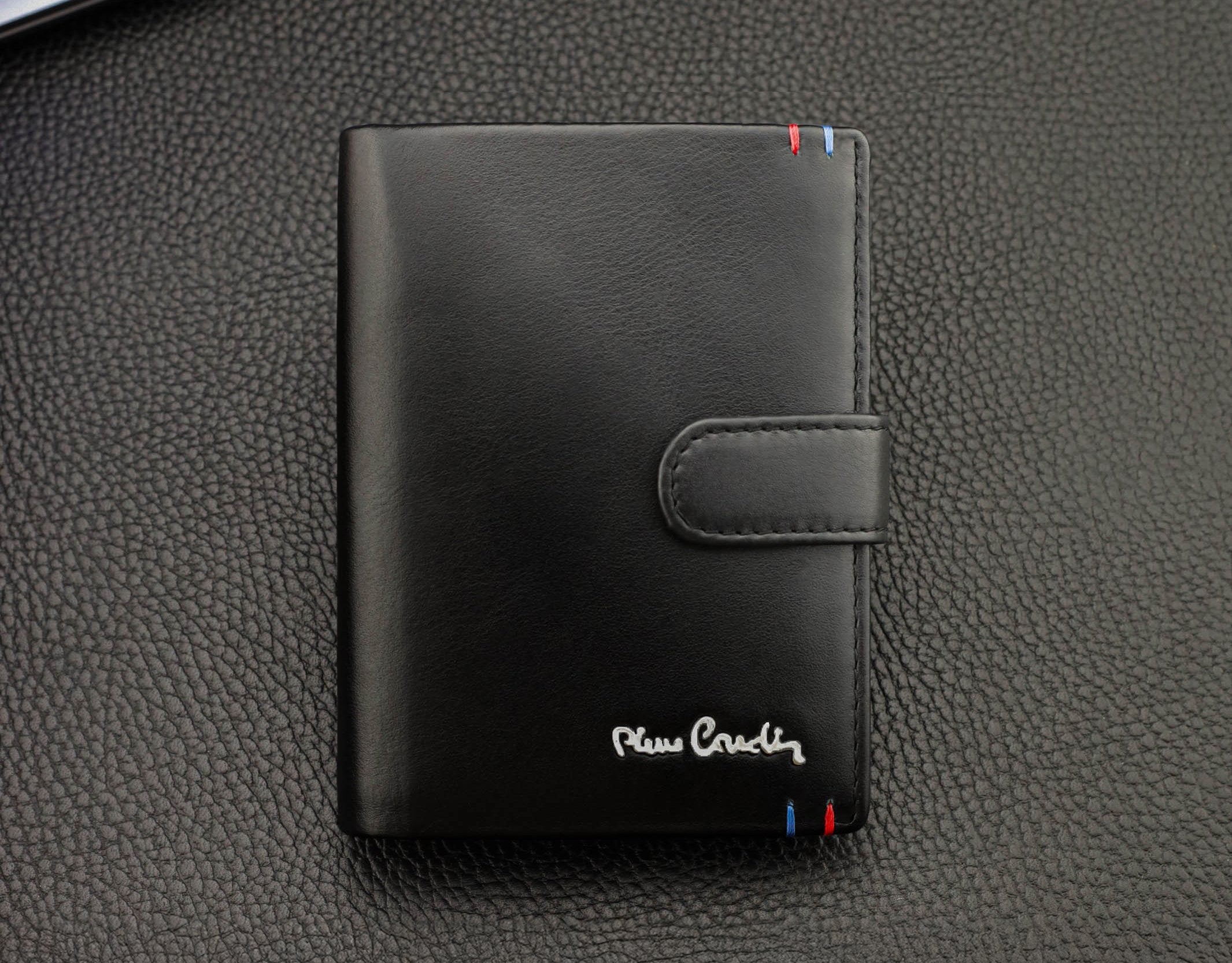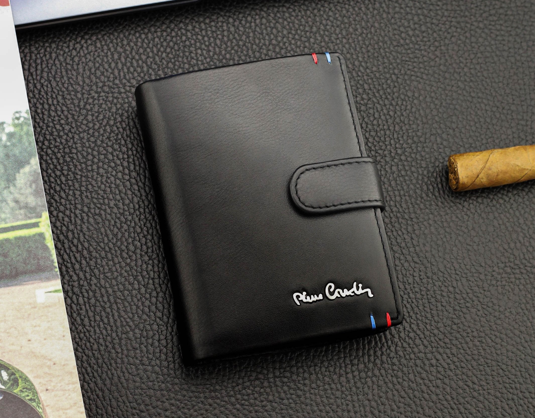 PIERRE CARDIN • Vīriešu ādas maks Q1 • Melns • Vertikāls • RFID • Vidēja izmēra • Ar ārēju apdruku
