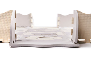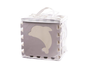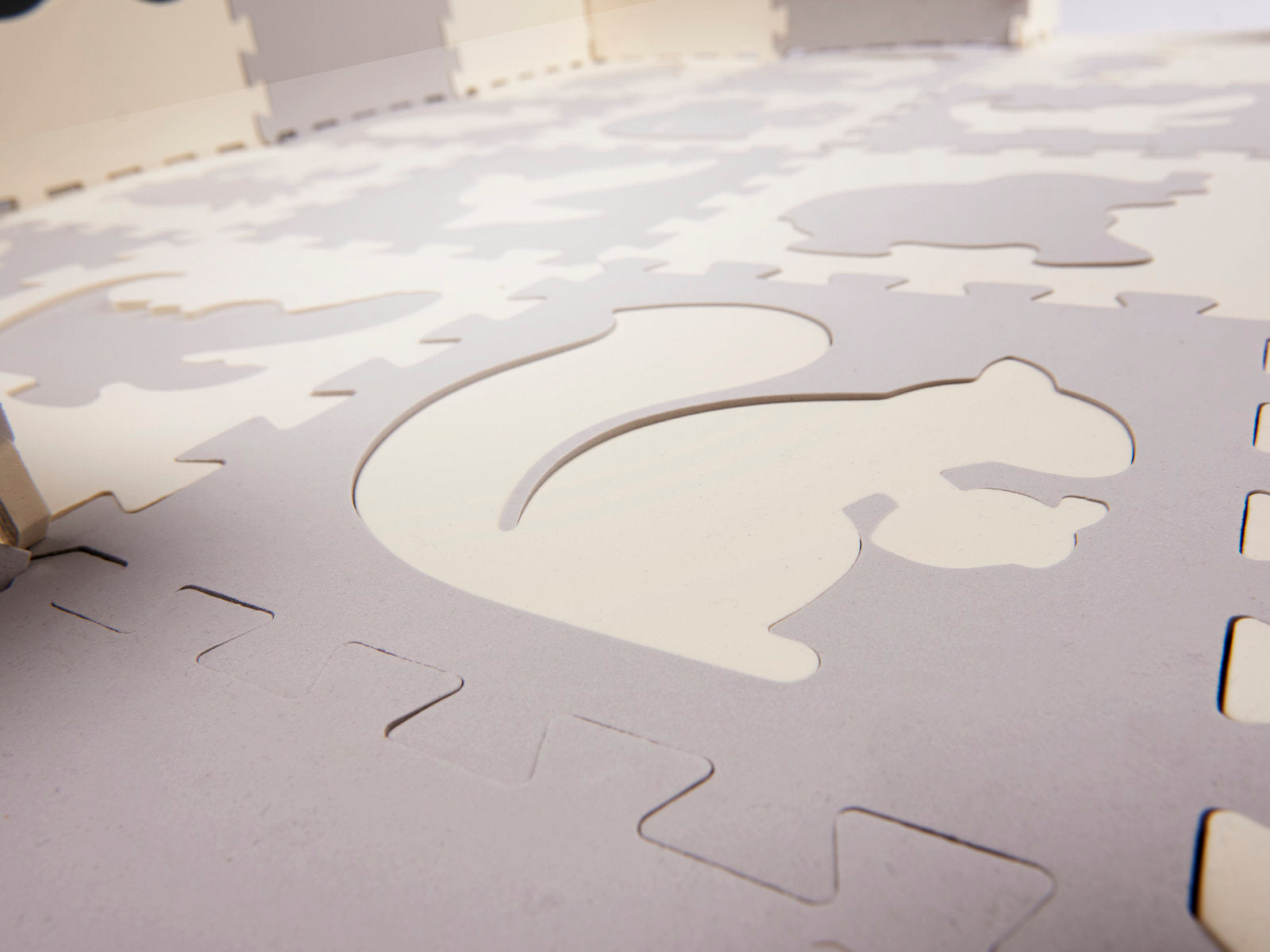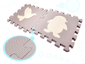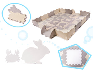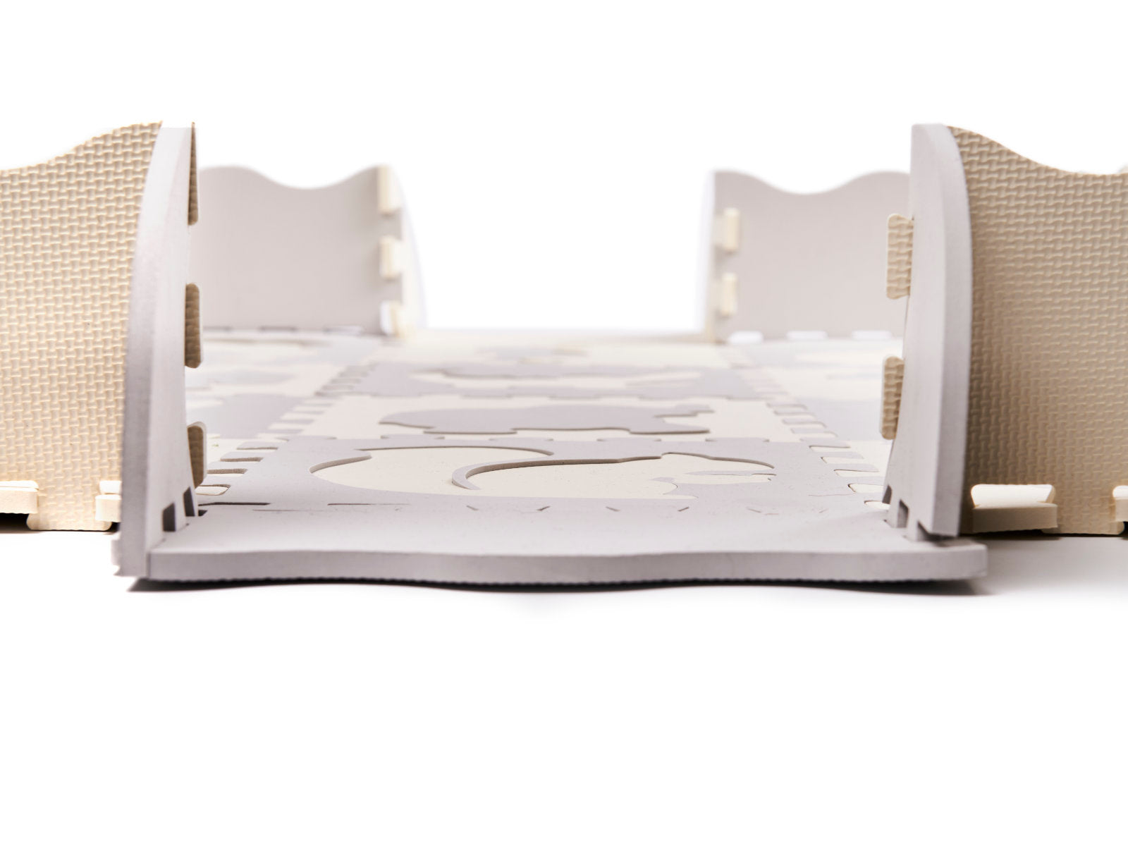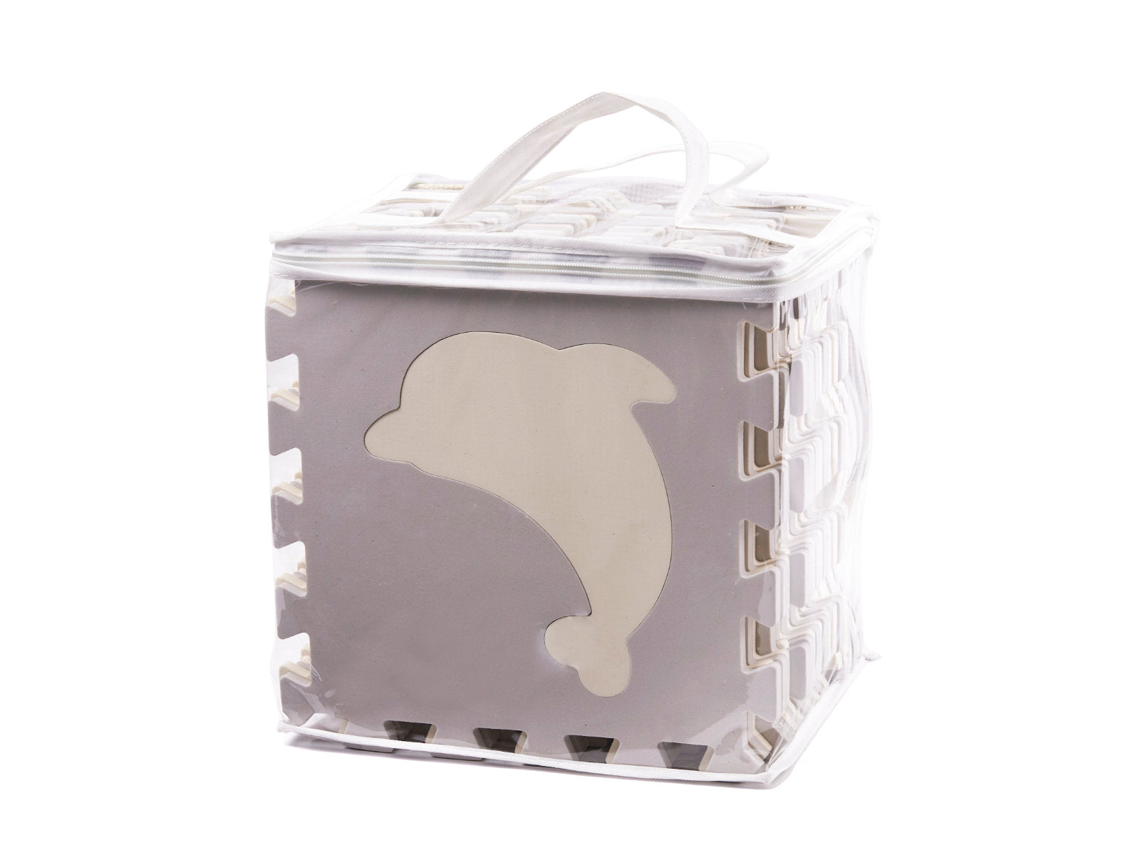 Izglītojošs putu puzles paklājiņš, pelēks/ekru krāsā, 36 gabali, 150x150 cm