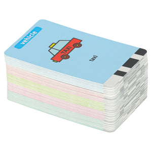 - 100 × attēlu kartītes (augi, transportlīdzekļi, pārtika, dzīvnieki, formas)