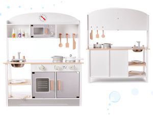Bērniem patīk atdarināt pieaugušos ikdienas aktivitātēs – un tas attiecas arī uz ēst gatavošanu. Tāpēc jūsu veikalā noteikti vajadzētu būt koka bērnu virtuvei – tā ļaus bērniem, kaut arī nelielā mērogā, justies kā saviem vecākiem!