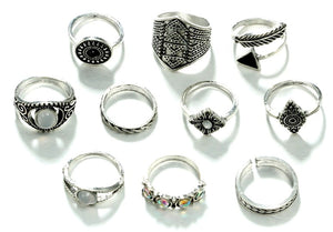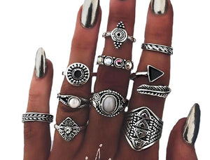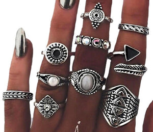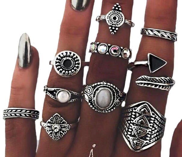 Mūsu interneta veikals iesaka šo moderno sudraba krāsas gredzenu komplektu, kas ir lieliski piemērots gotiskā, pankroka un roka stila izcelšanai. Komplektā ietilpst dažādi gredzeni, tostarp: