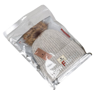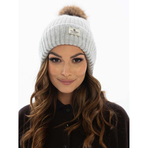 Silta sieviešu ziemas cepure no angoras un akrila, pelēka, ar noņemamu bumbuli - ērtai ikdienas valkāšanai.